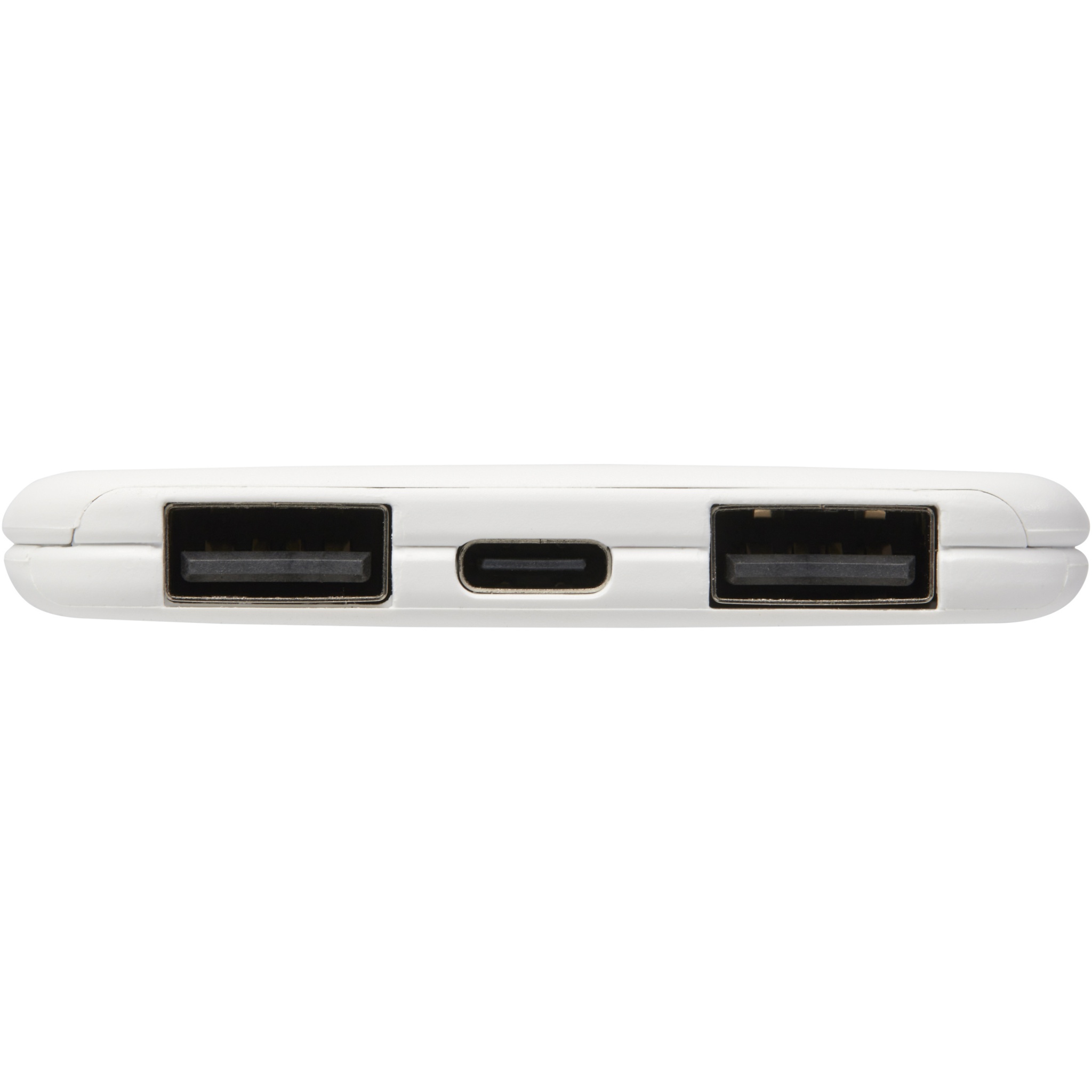 Ultra slim and lightweight power bank with 4000 mAh capacity and dual USB A outputs that allows for charging two devices simultaneously. The power bank has LED indicators displaying the remaining energy level. Type-C input: 5V/2A. Dual USB A output: 5V/2A max. Delivered with a 30 cm TPE USB A to Type-C charging cable, a kraft paper gift box and an instruction manual.
