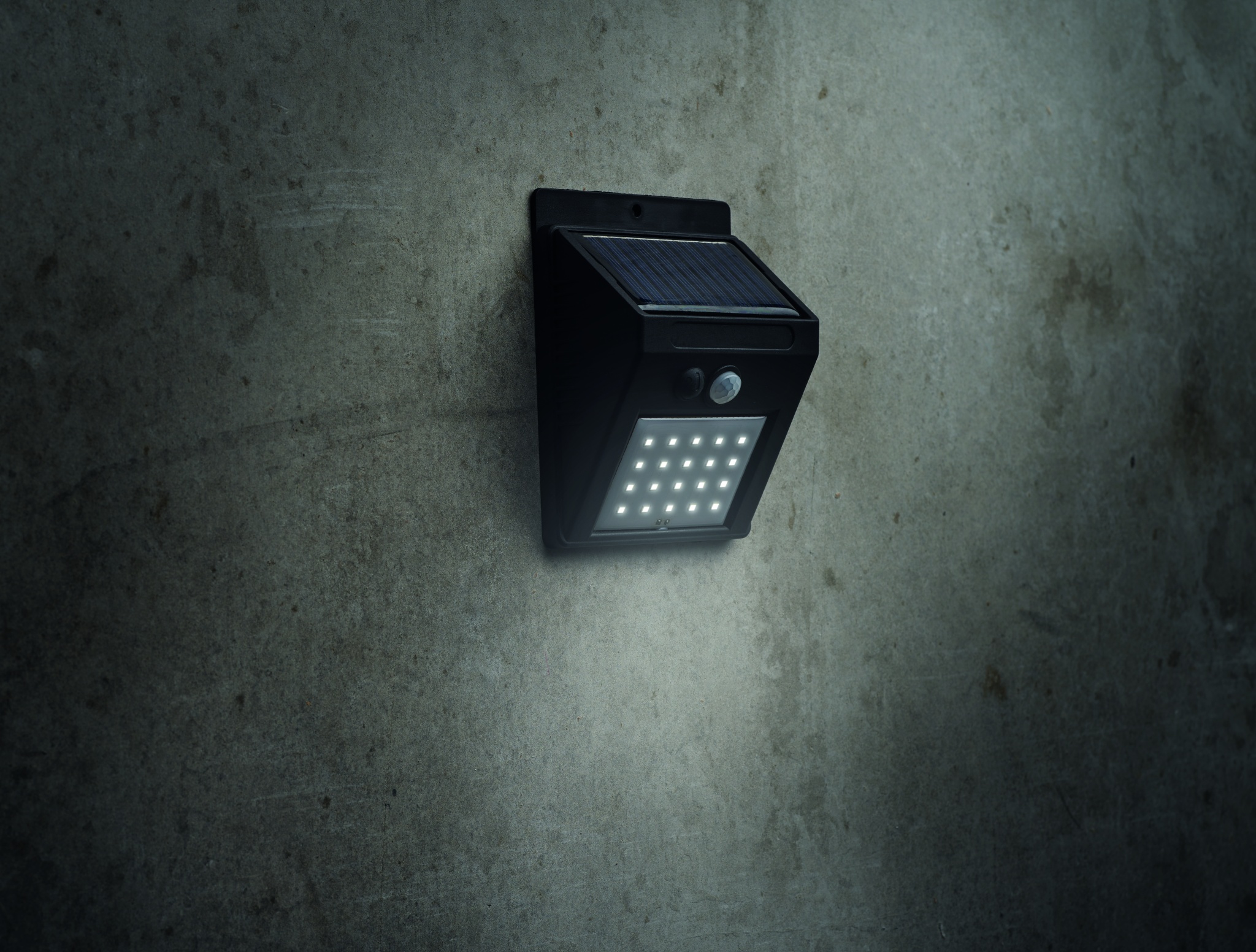 20 LED solar light in PP with motion and night sensors. PIR (Passive Infrared Sensor) motion sensor. CDS night sensor. Protection rating: IP 44. Battery capacity: 800 mAh.