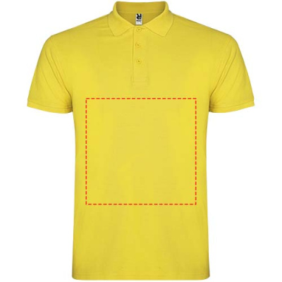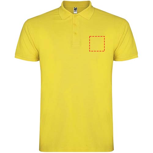 Short-sleeve polo shirt for men. Reinforced covered seams in interior collar. 1x1 ribbed cuffs and collar. Side seams. 3-button placket and side slits. Optional pocket. Removable label. The model is 185 cm and is wearing size L.
