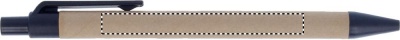 Recycled cardboard sticky memo note dispencer with matching pen. Medium sticky notes pads in 2 colours and 5 assorted colours page markers. Matching puch button ball pen with paper barrel. Blue ink. Pen holder. Pocket with 12 cm PP transparent ruler.