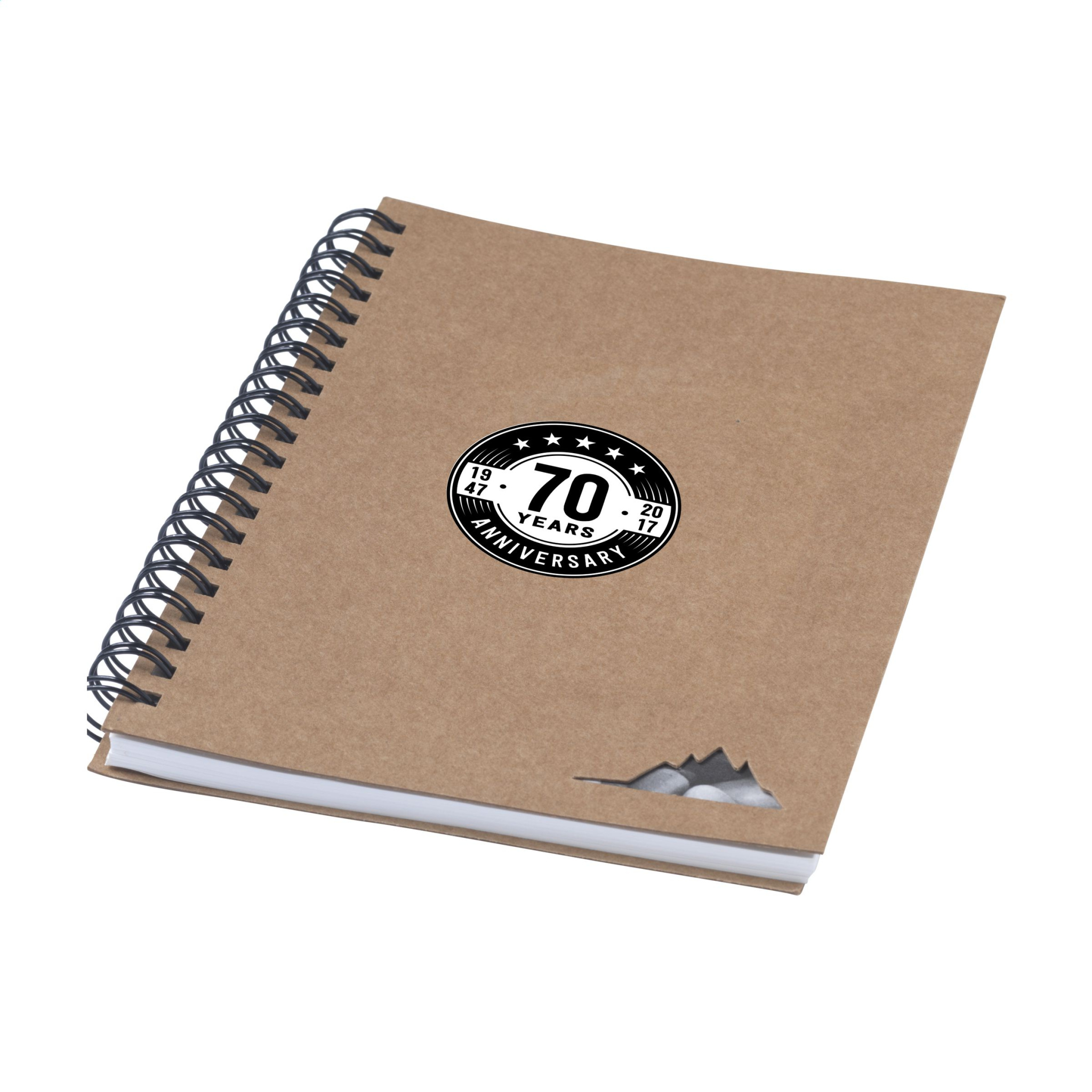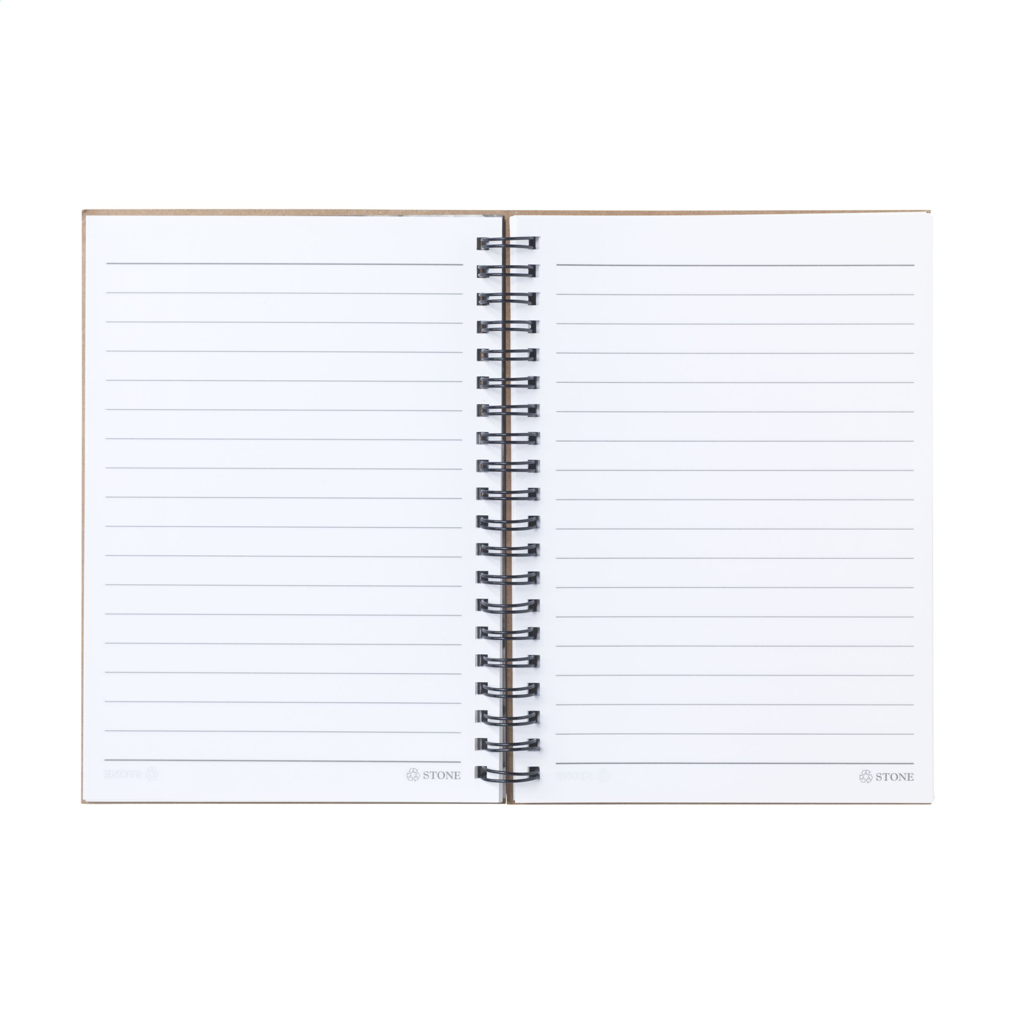 WoW! Notebook with a cover made from recycled cardboard. With 70 lined sheets/140 lined pages (120 g/m²) made from natural stone: 80% calcium carbonate and 20% HDPE plastic. The paper is anti-bacterial, waterproof, and resistant to tears and stains. With metal wire-o-binding.