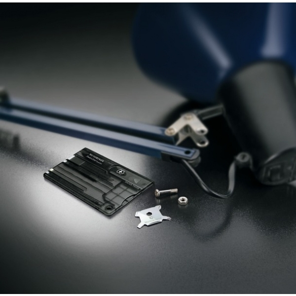 MOQ: 100 pcs Delivery time: cca. 5 weeksSwisscard is a small card that you can keep in your wallet or pocket. Swisscard comes with 14 useful tools:1. Letter opener 2. Quadruple instrument - screwdriver with: 3. - Philips 00-0 screwdriver 4. - Philips 1-2 screwdriver 5. - with a 3mm screwdriver 6. - with a 5mm screwdriver 7. stainless steel pin 8. a nail file with: 9. -  a screwdriver 10. tweezers 11. toothpick 12. a pen 13. ruler (cm) 14. ruler (inches)