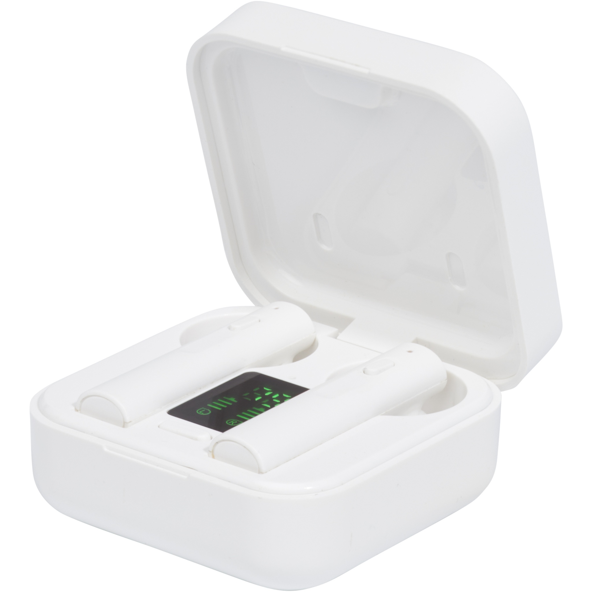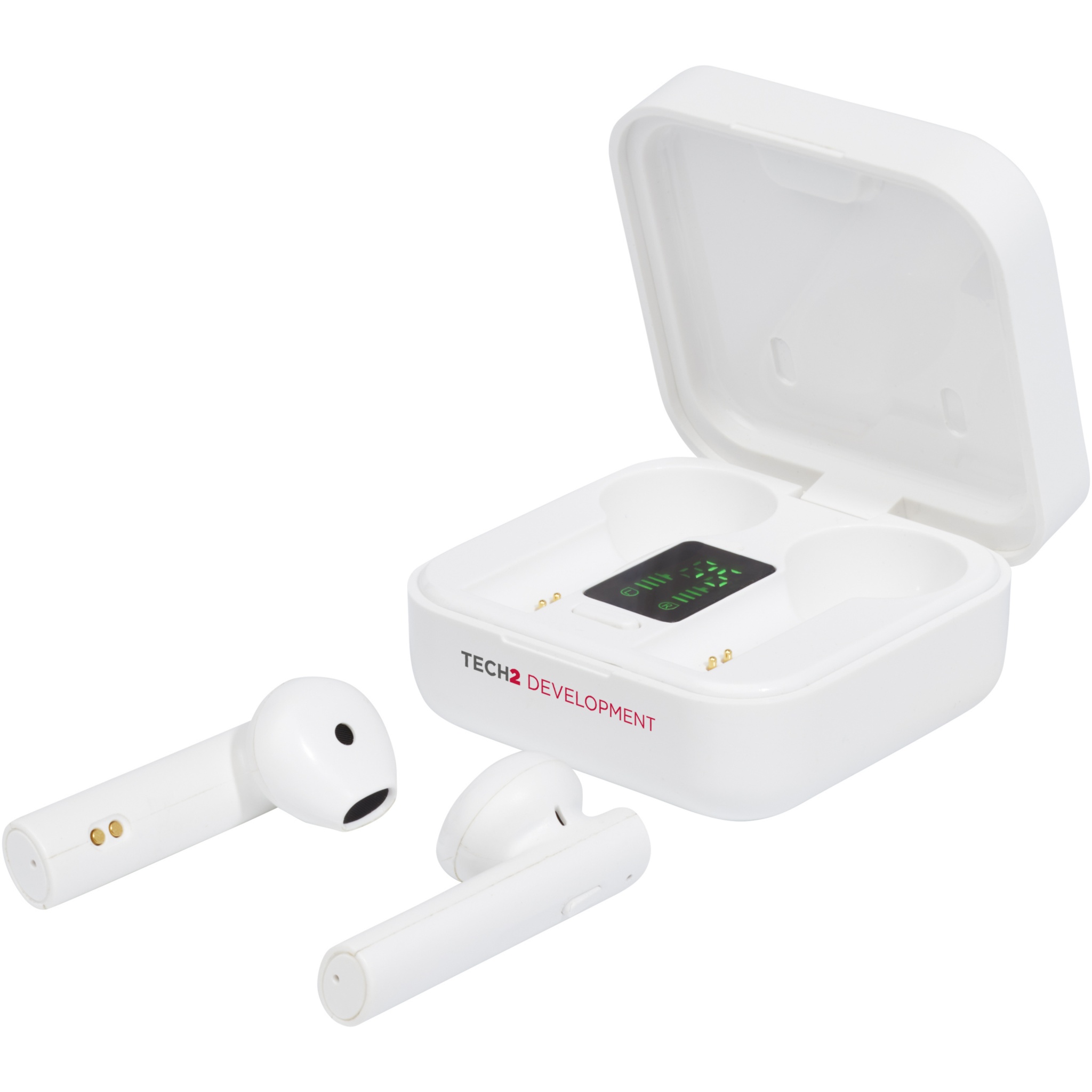 Stylish TWS (True Wireless Stereo) earbuds with an efficient solar panel integrated on the charging case. Ideal earbuds for outdoor activites since they can be charged by solar power when power sources are not available. Bluetooth® 5.0 for a stable connection and low power consumption, with a connection range up to 10 meters. Playback time up to 3 hours at maximum volume. The 200mAh rechargeable polymer battery in the charging case can charge the earbuds from 0-100% up to 3 times. Ergonomic design and comfortable to wear, with an integrated multi-function button on the earpiece for shortcut control. Delivered in a premium gift box.