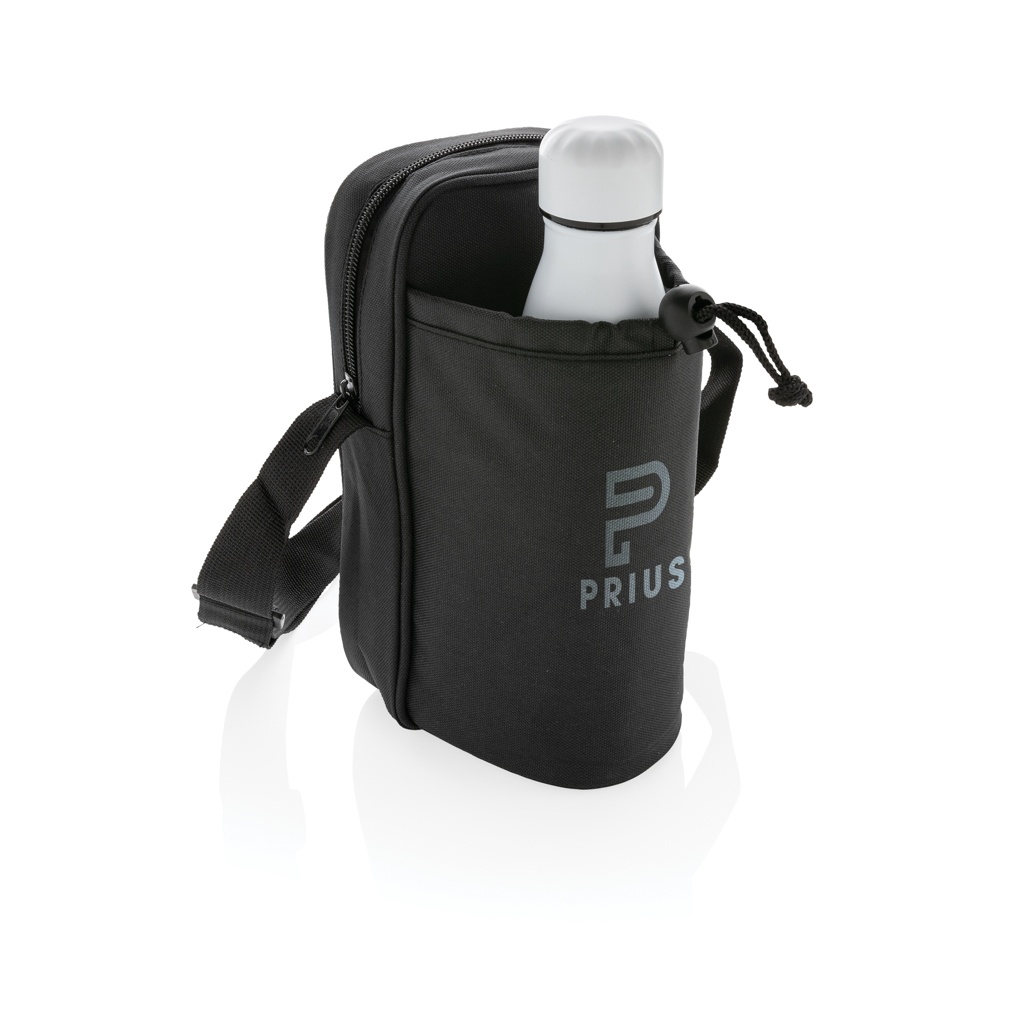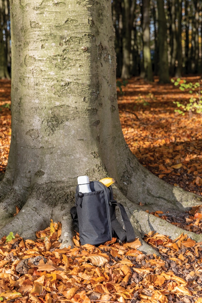 Keep your hands free and your drink nice and cold during a hike. This sling bag fits all your necessities in the main zipper pocket and has a designated insulated drawstring pocket for your bottle. It will ideally hold any bottle up to a height of 25cm and a diameter up to 7.5cm. Adjustable shoulder strap. Exterior 100% 600D polyester, interior 210D polyester and PEVA. PVC free.