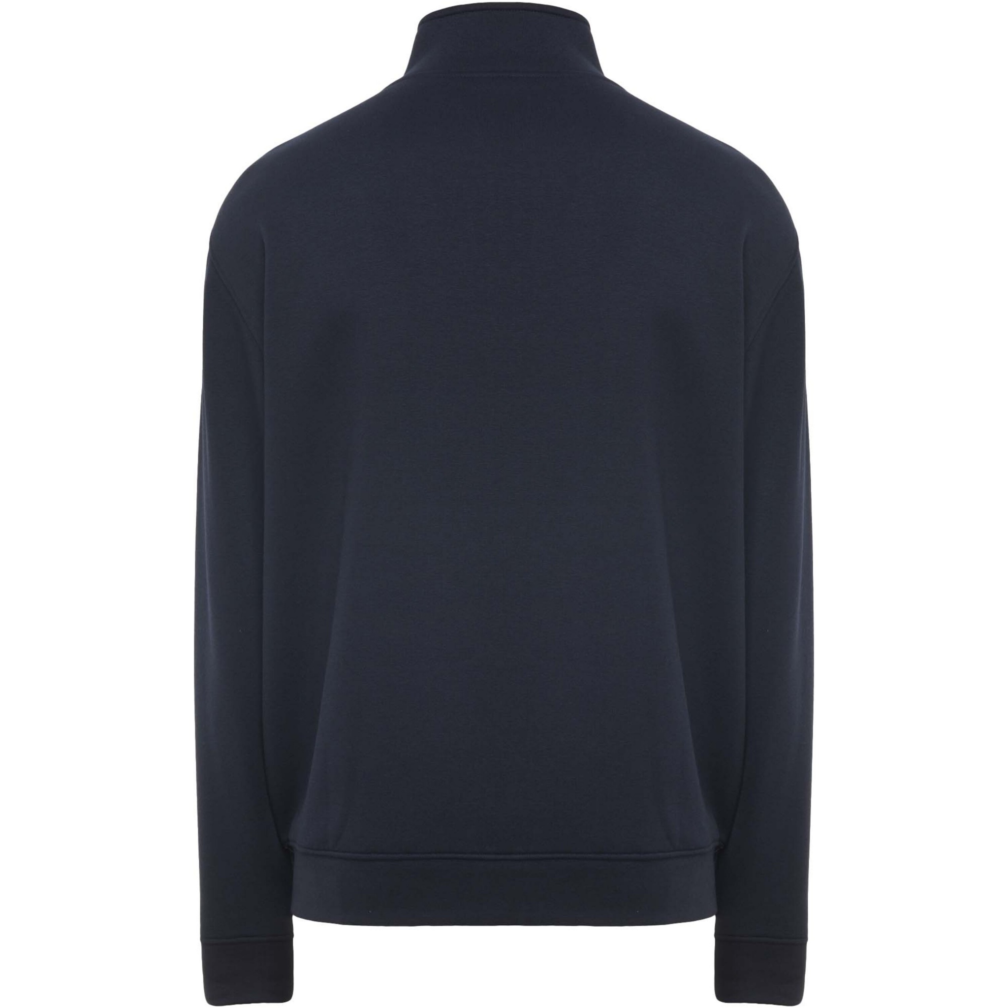 High collar sweater with matching zip. Matching inner collar with reinforced covered seams. 1x1 ribbed fabric in cuffs and waist. Removable label. The male model is 185 cm and is wearing size L, and the female model is 168 cm and is wearing size S.