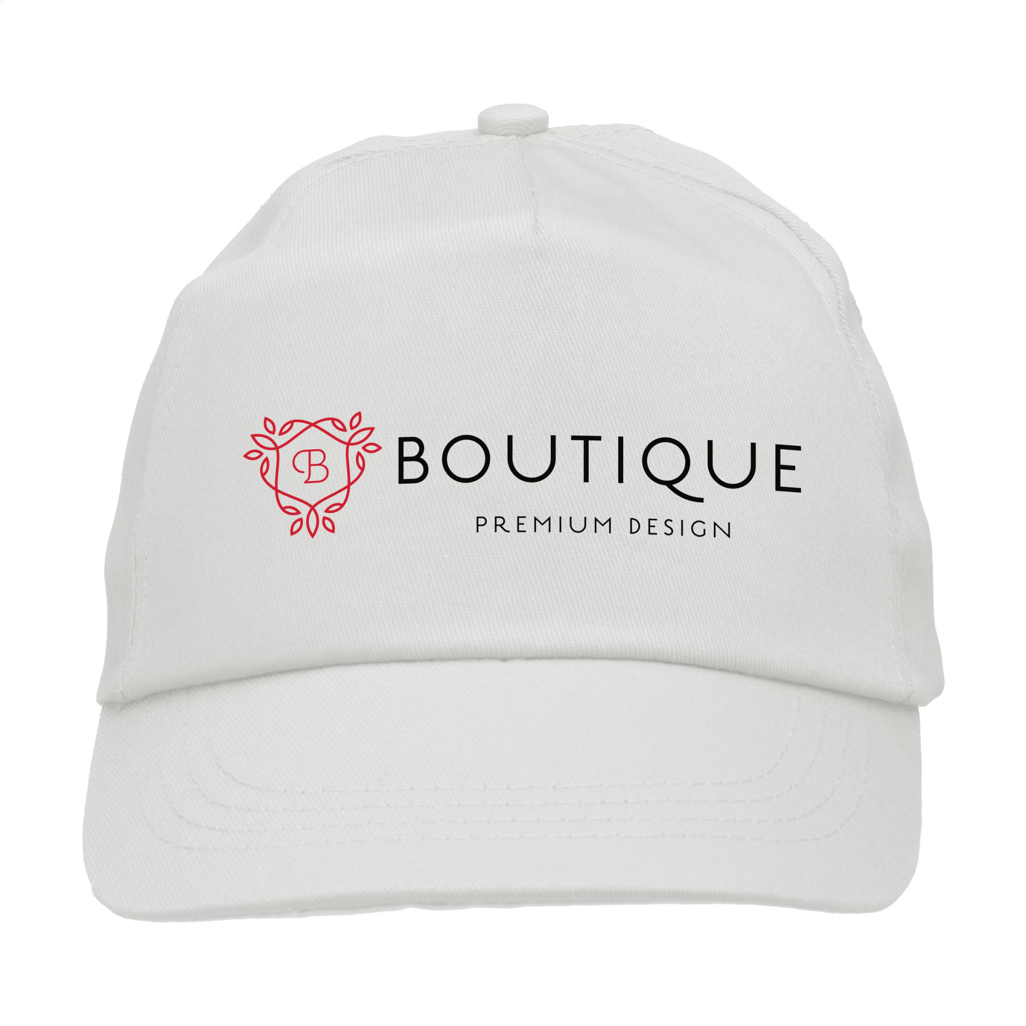 Baseball cap made from 100% cotton with pre-shaped peak and adjustable strap.