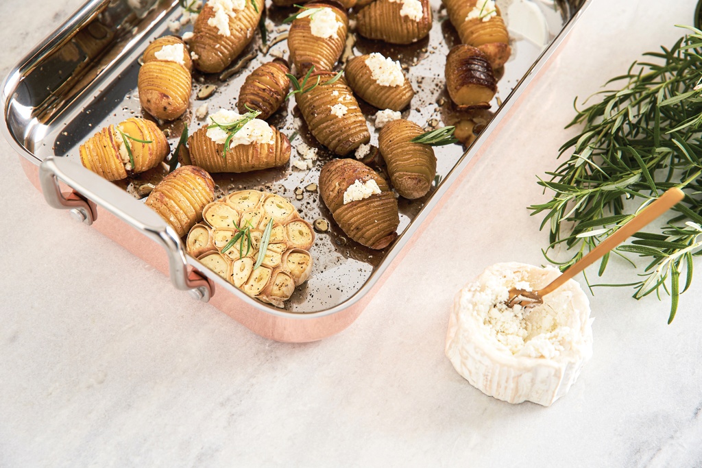 Exclusive tri-ply copper oven dish. The first layer is the copper exterior, the interior consists of a layer of aluminium and a layer of stainless steel, which make it easy to clean. The copper and aluminium layers conduct heat well, allowing the pot to heat up quickly and evenly.