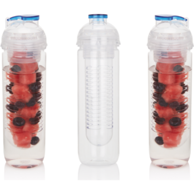 500ml Tritan bottle with fruit infuser compartment. Infuse your water with a load of flavour by adding fresh fruits into the infuser compartment. The infuser compartment can also be used to chill your water by adding ice cubes.