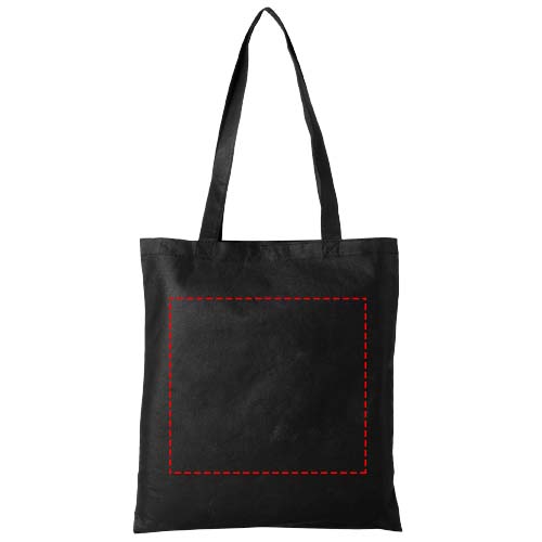 Need a good bag for any fair or conference? The Zeus large non-woven tote bag is a perfect option. Its slim design makes it an elegant model and suitable for carrying lightweight items like a notebook and a pen. The handles are 29 cm long and therefore easy to carry over the shoulder. Resistance up to 5 kg weight.