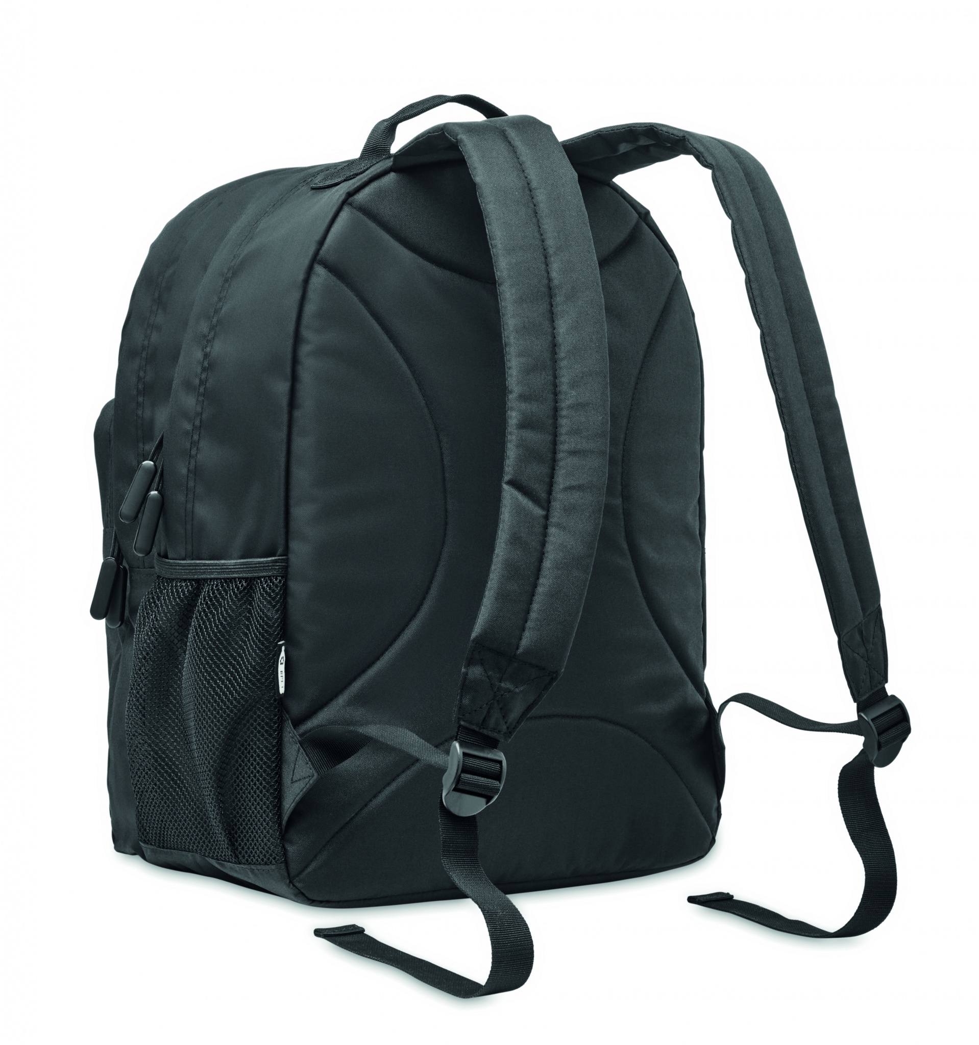 15-tolline sülearvuti seljakott 300D RPET polüestrist. Sellel on 2 suurt lukuga sektsiooni, topelt lukuga esitaskud ja võrgust küljetasku. Polsterdatud selja-, ala- ja õlarihmad.
