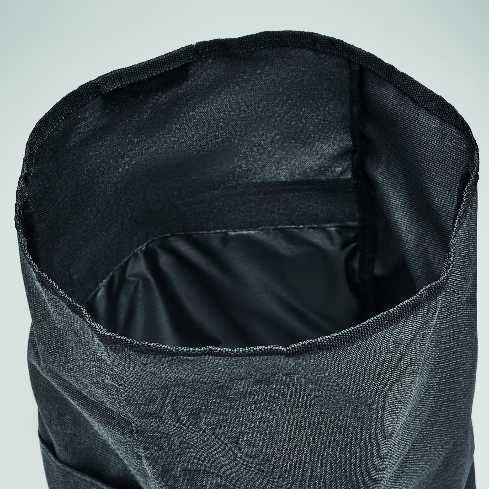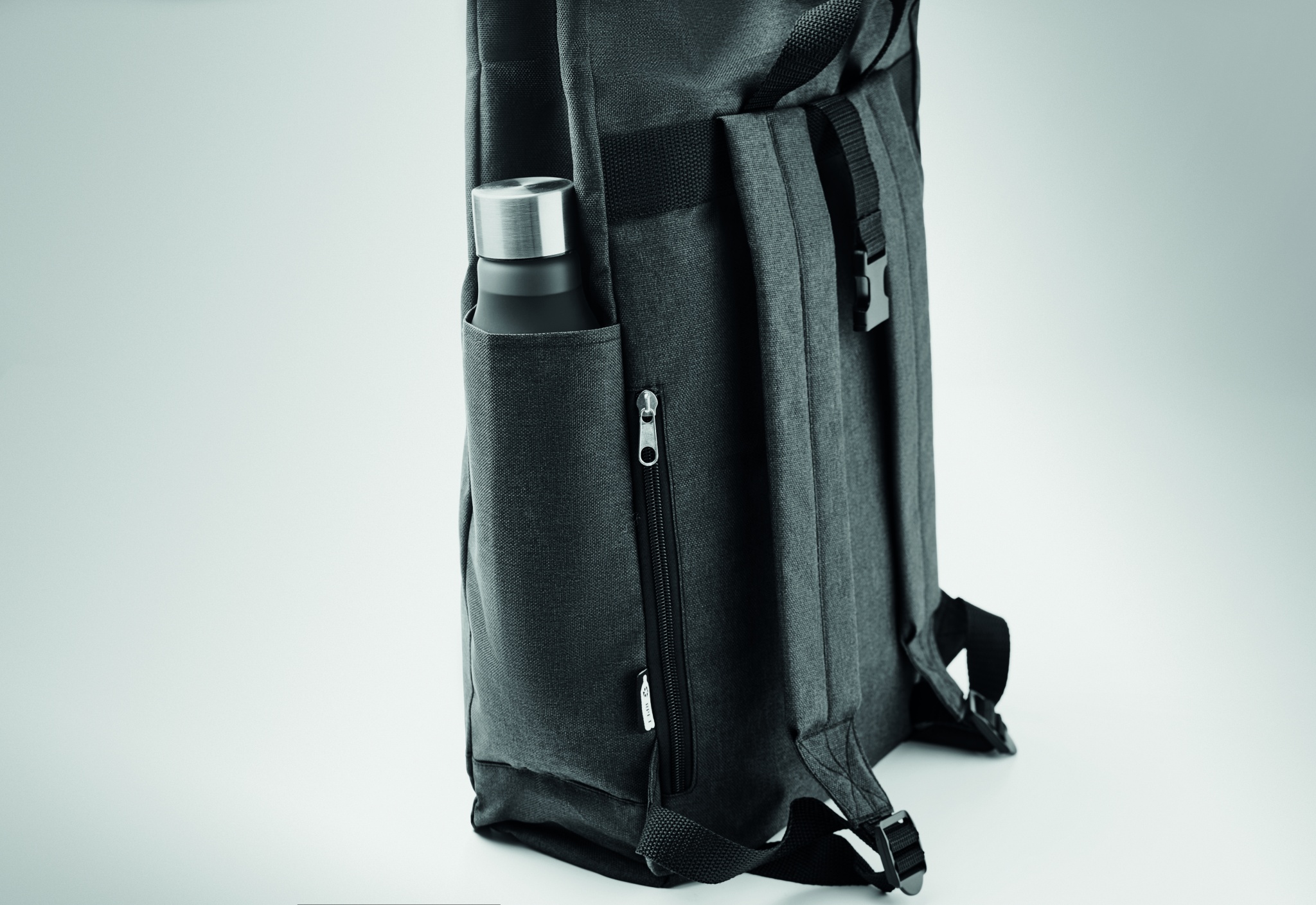 Seljakott 600D RPET 2-toonist polüestrist, rullkinnisega.