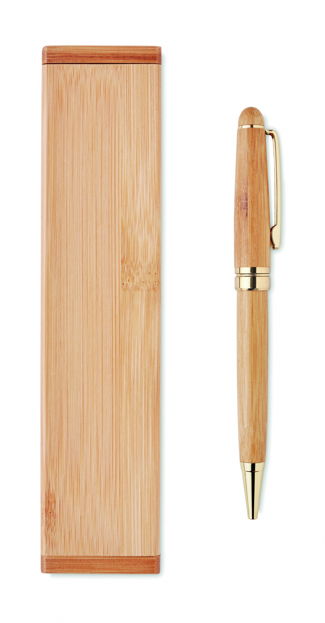 Logo trade ärikingid foto: Bambusest keeratava mehhanismiga pastapliiats karbis