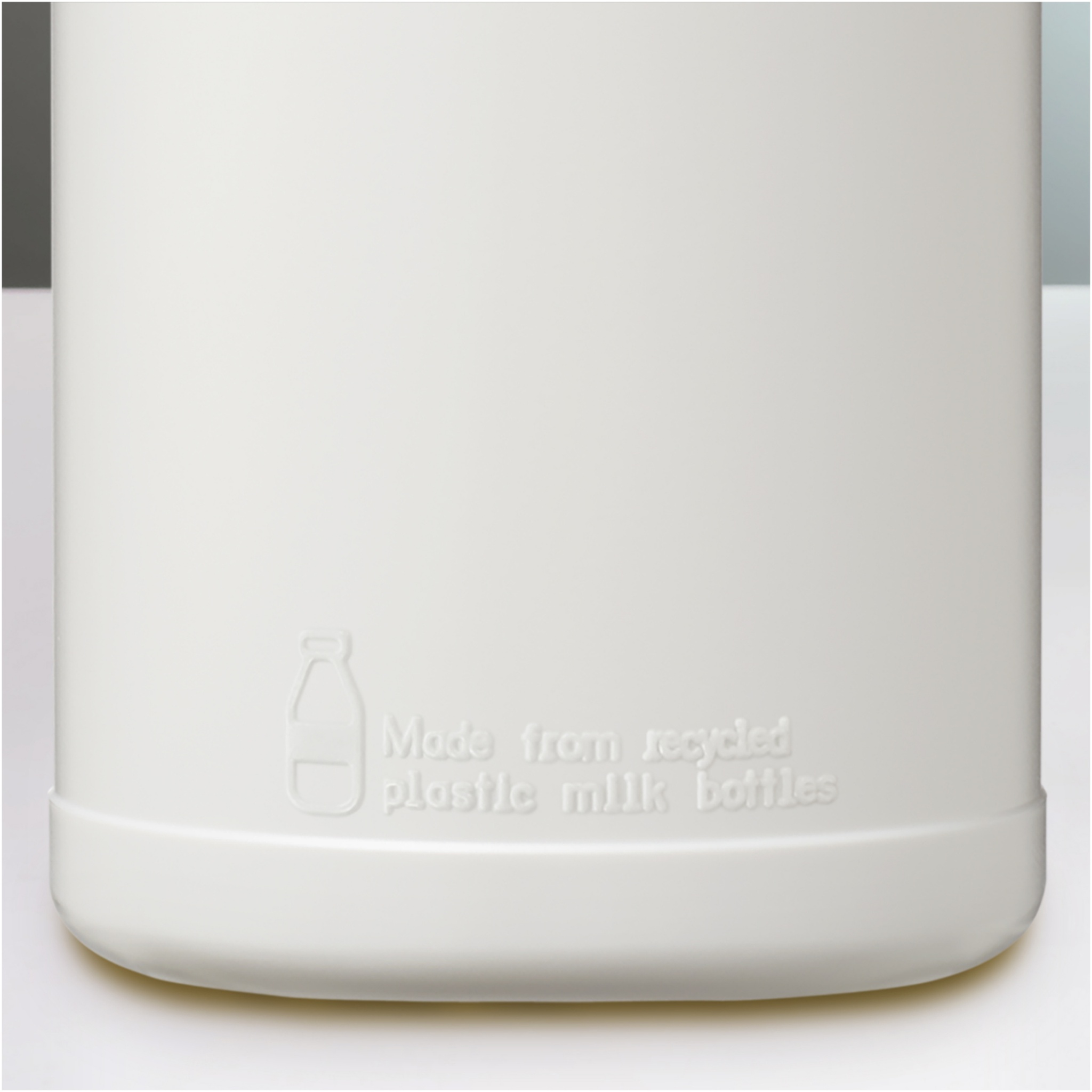 See ühe seinaga spordipudel muudab ühekordselt kasutatavad plastikust piimapudelid millekski, mida saab ikka ja jälle kasutada. Pudelil on pritsmekindel klappsulguriga kaas, mille maht on 500 ml. Taaskasutatud plasti olemuse tõttu võivad värvitoonid veidi erineda ja esineda võib värvilaike. Valmistatud Ühendkuningriigis.