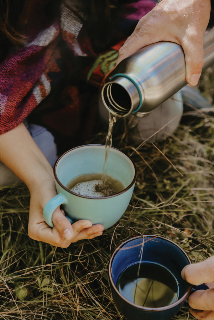 Roostevabast terasest vaakumpudel, mis hoiab joogid külmana 24 tundi või kuumana 12 tundi. Kaas on ka täielikult roostevabast terasest, mis tähendab, et vesi ei puutu kokku ühegi plastikuga. Kunstnahk toimib kandeaasa ja annab kauni disainidetaili. Ainult käsipesu