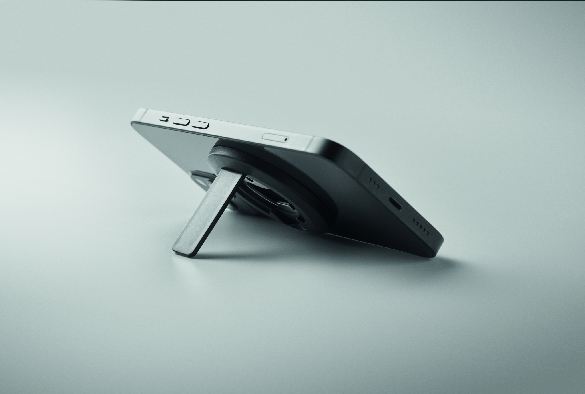 Magnetiline telefonihoidik pudeliavajaga. Ühildub iPhone® 12 ja uuemate mudelitega. Komplektis on täiendav magnetiline metallrõngas teiste mittemagnetiliste juhtmevabalt laetavate telefonide laadimiseks.