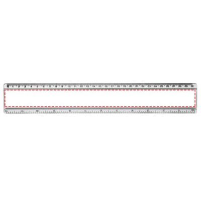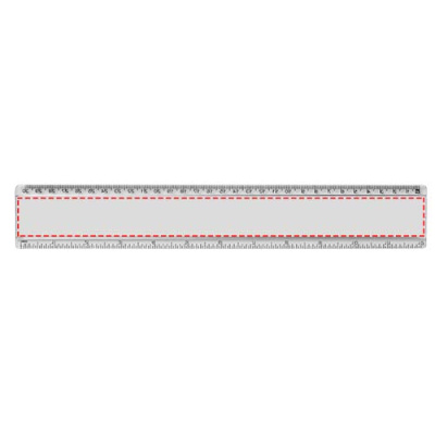 Paberist plastikust joonlaud, millel on mõlemad märgistused tollides ja sentimeetrites.