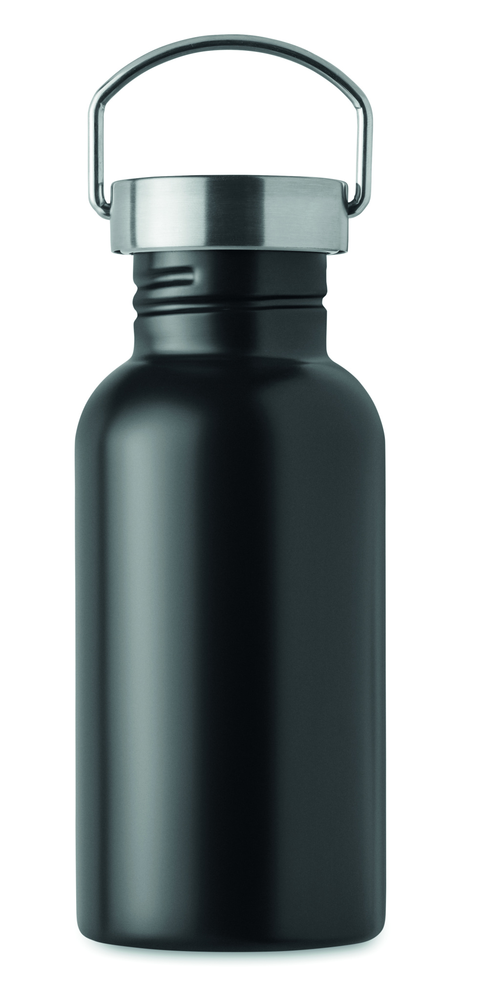 Must üheseinaline taaskasutatud roostevabast terasest pudel (90% taaskasutatud ja 10% uus roostevaba teras), kaane ja käepidemega. Lekkevaba. Maht: 500 ml.