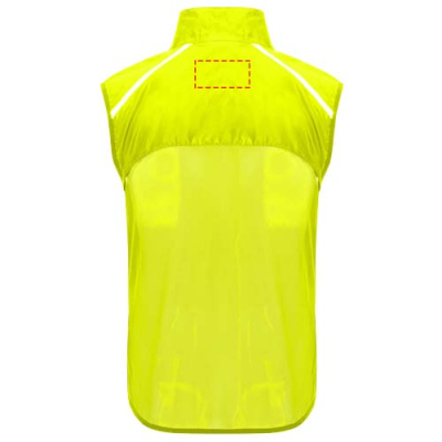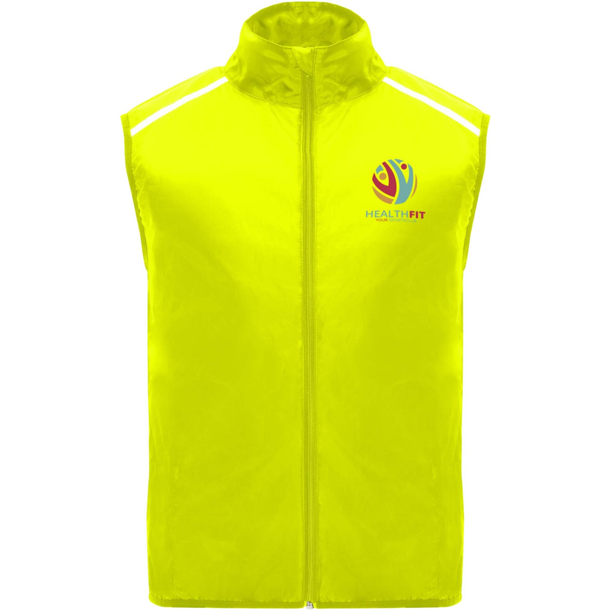 Tuulekindel ja hingav. Ees tõmblukk koos sobiva lõuakaitsega. Elastne side käeaugus ja allosas. Seljaosa alumine osa mikroperforeeritud kangast. Hästi nähtavad detailid peal, ees ja taga. Elastse rihmaga tasku vesti hoidmiseks ja randmel kandmiseks. Eemaldatav etikett.