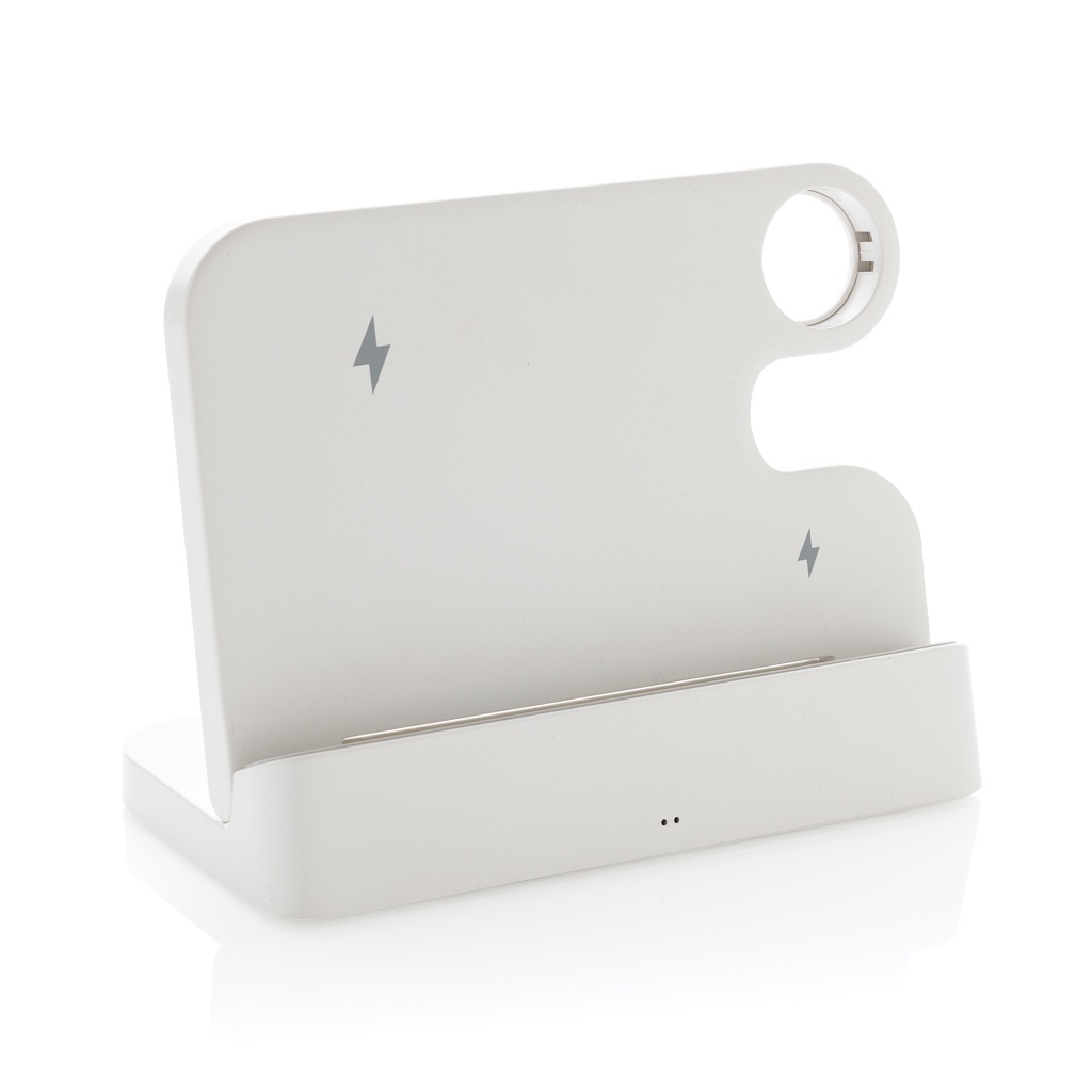 Kokkupandav disain laadimisalus 15 W juhtmevaba laadijaga, mis on valmistatud taaskasutatud ABS-ist. Teise 5 W juhtmevaba laadijaga väiksemate esemete (nt kõrvaklapid) laadimiseks. iWatchi pesaga, mis sobib iWatchi ametliku laadimiskaabliga. Tagaküljel on 5V/1A USB A ja USB C väljundport esemete laadimiseks kaabli abil. Ränist otstega põhjas, et vältida libisemist, ja silikoonist pehmendusega aluse külge, et telefon oleks ideaalses korras. Taaskasutatud kogusisaldus: 80% eseme kogukaalust. RCS-sertifikaat tagab taaskasutatud materjalide täielikult sertifitseeritud tarneahela. Pakitud FSC® pakendisse. PVC vaba. Kaasa arvatud RCS-i taaskasutatud TPE 120 cm USB A–USB C laadimiskaabel. Pakitud FSC® pakendisse. PVC vaba