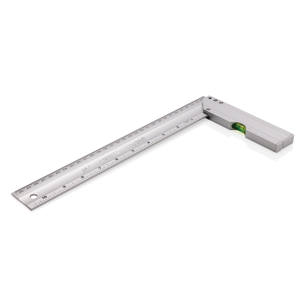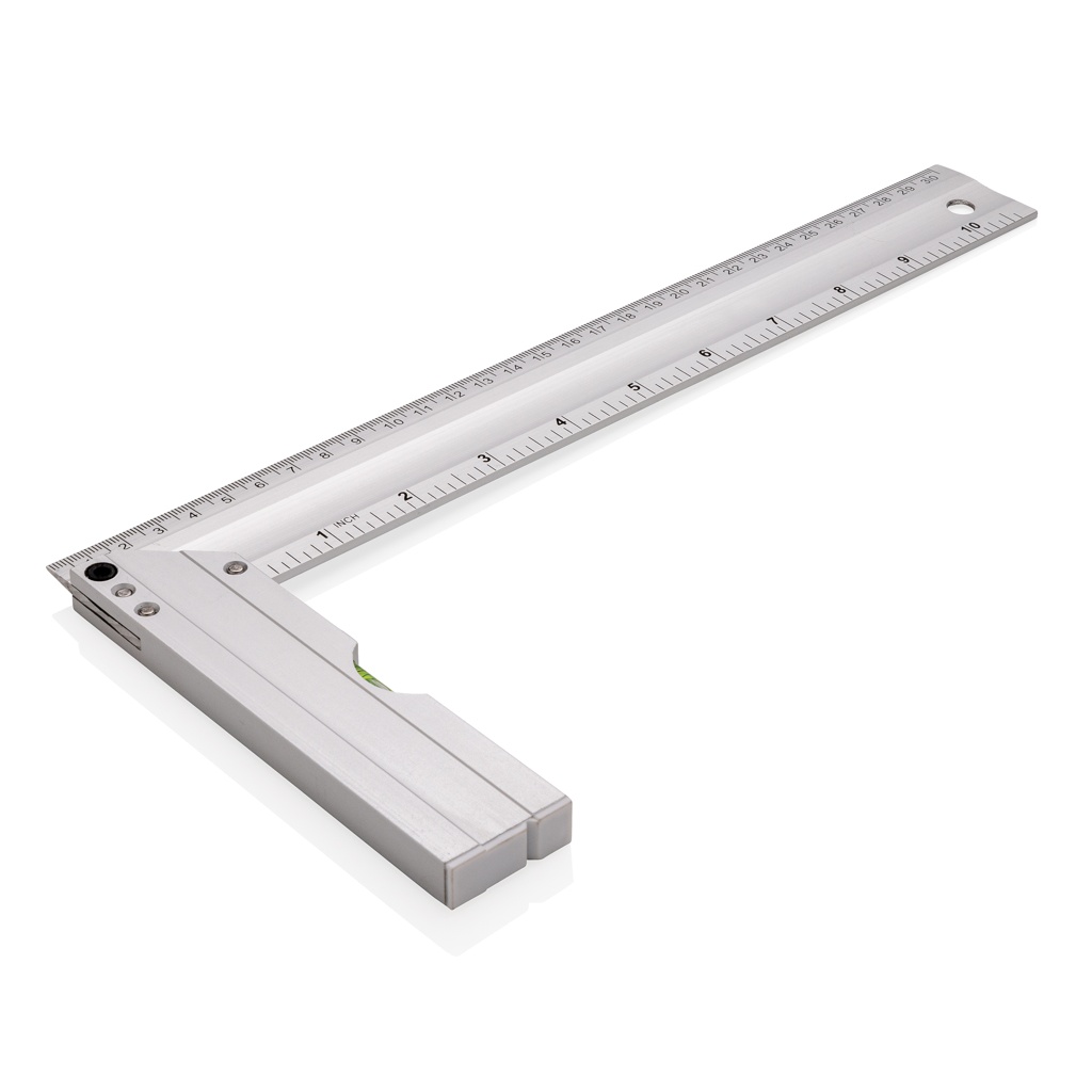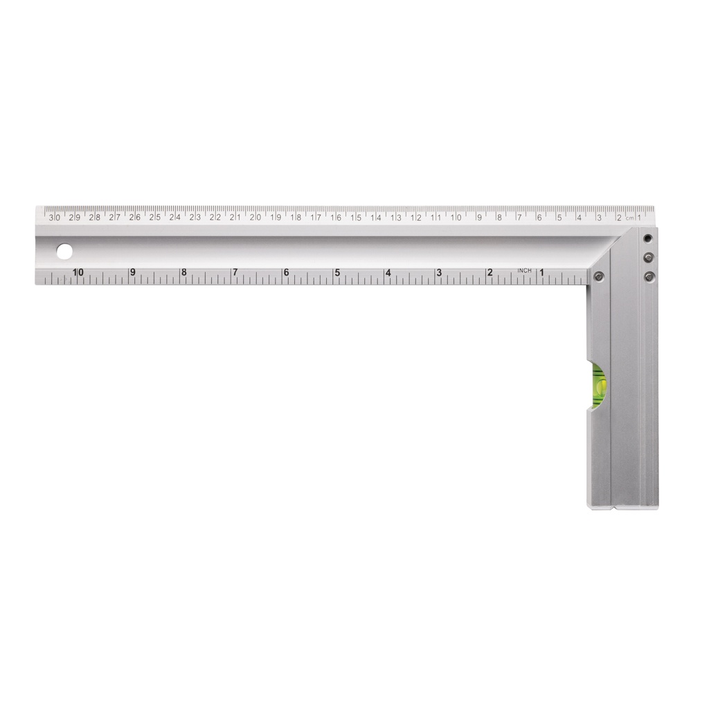 Professionaalne alumiiniumist ruudukujuline joonlaud integreeritud tasemega, mis on optimaalne nurkade mõõtmiseks ja ruutude joonistamiseks. Kahepoolne printimine indikatsiooniga CM (30) ja tollides (10) Tase Täpsus 0,5 mm