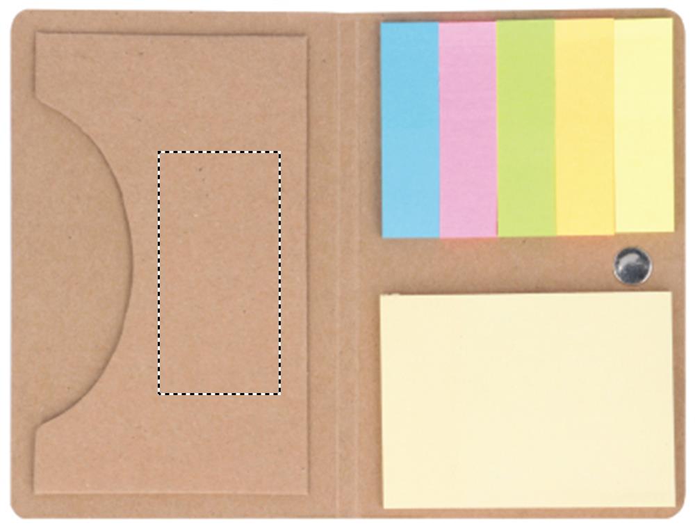Kaardihoidja jõupaberist. Keskmise kollased märkmepadjad ja 5 erinevat värvi lehemarkerit. Elastne sulgemisrihm.