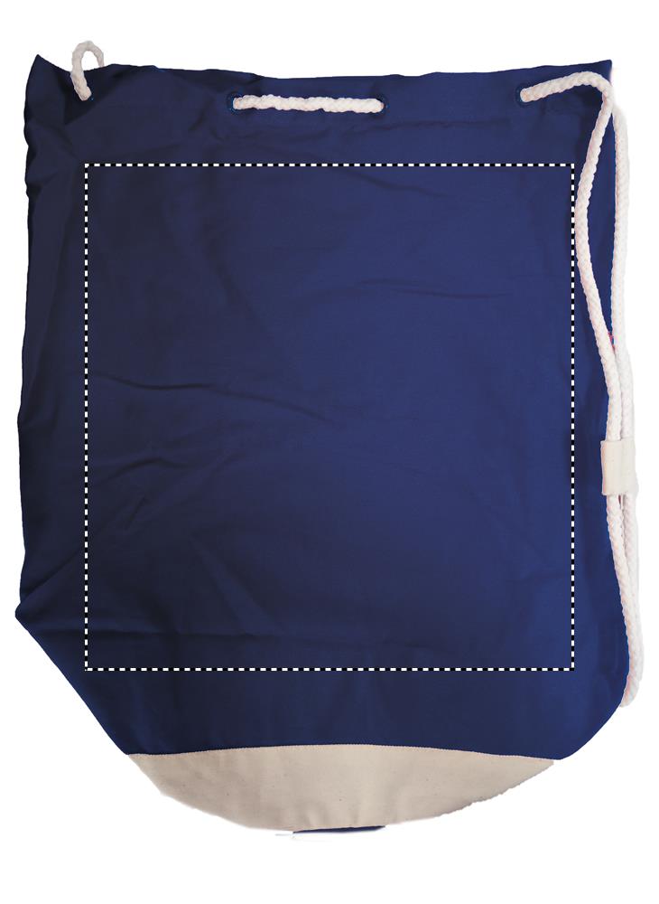 Kahevärviline puuvillane tumesinine valge triibuga kott. 200gr/m² puuvillane toimne.