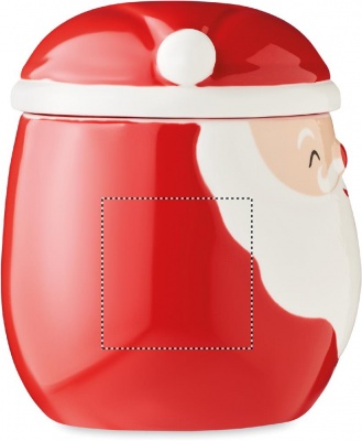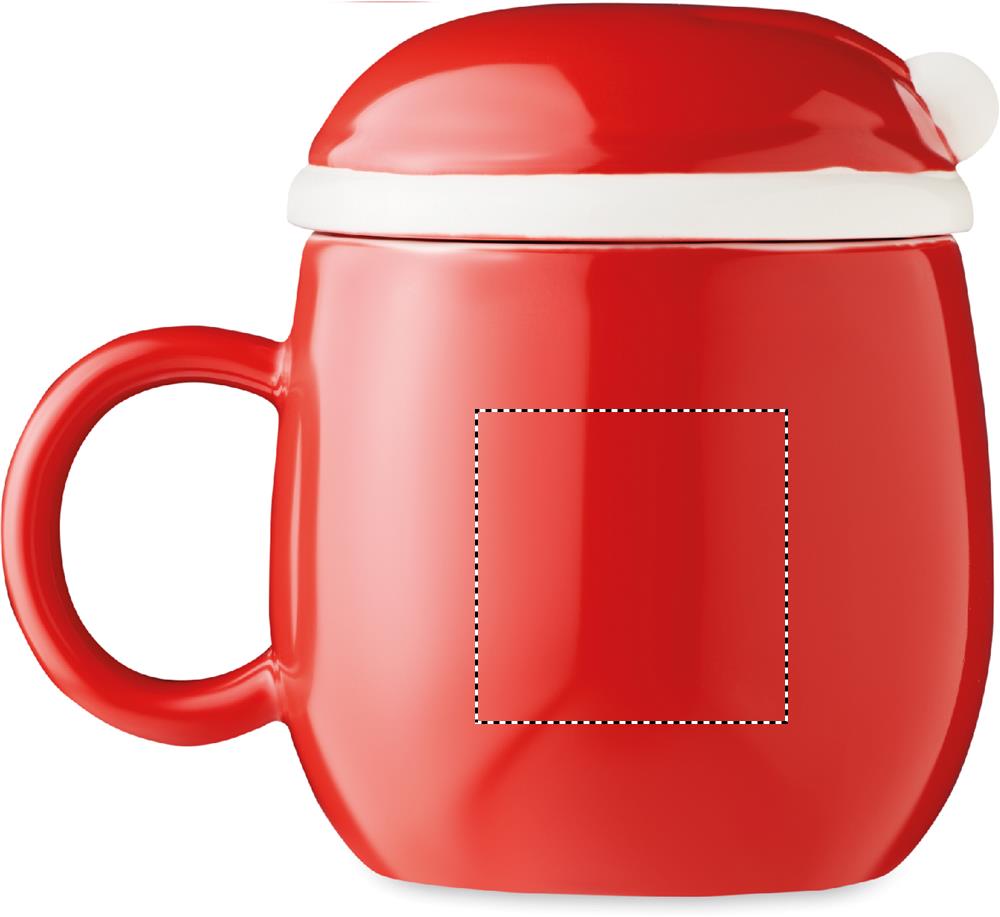 Jõuluvana kaunistuse ja kaanega keraamiline kruus. Mahutavus: 370 ml.