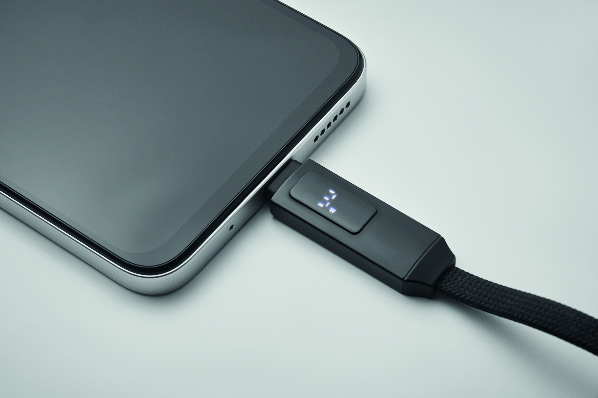 60 W laadimis- ja andmesidekaabel võtmehoidjaga. C-tüüpi C-tüüpi ühendamiseks, LED-ekraan laadimistaseme kuvamise funktsiooniga. Magnetkinnitus.