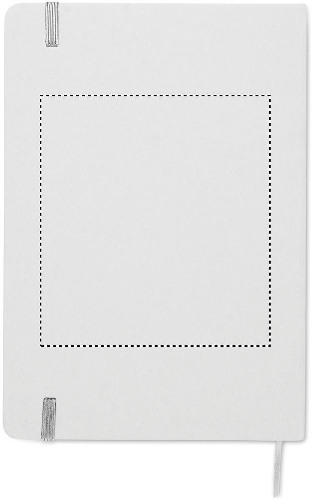 A5 märkmik kõva taaskasutatud pappkaanega. Valgete kaantega, 160 joonega taaskasutatud paberilehte (80 lehte). Elastne sulgemisrihm, järjehoidja pael. Pärast lasergraveerimist selgub värv.