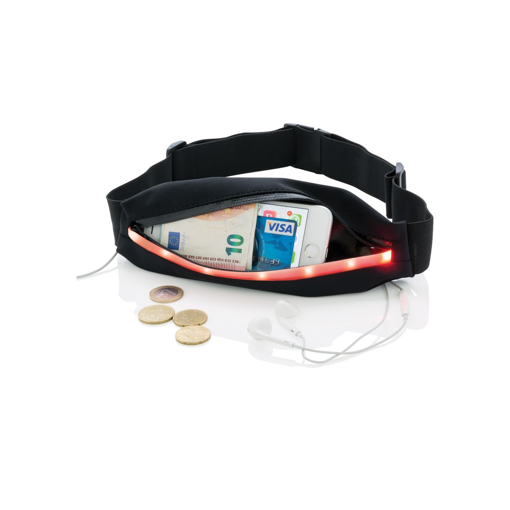 Jooksuhoidja on valmistatud elastsest vetthülgavast materjalist koos veekindla lukuga. Integreeritud turvavalgustiga hea nähtavuse tagamiseks pimedas treenides. Valgul on 3 režiimi, mida saab seadistada vastavalt iga kasutaja eelistustele. Reguleeritava lukuga, mis sobib igale suurusele. Kaasa arvatud aku otseseks kasutamiseks.
