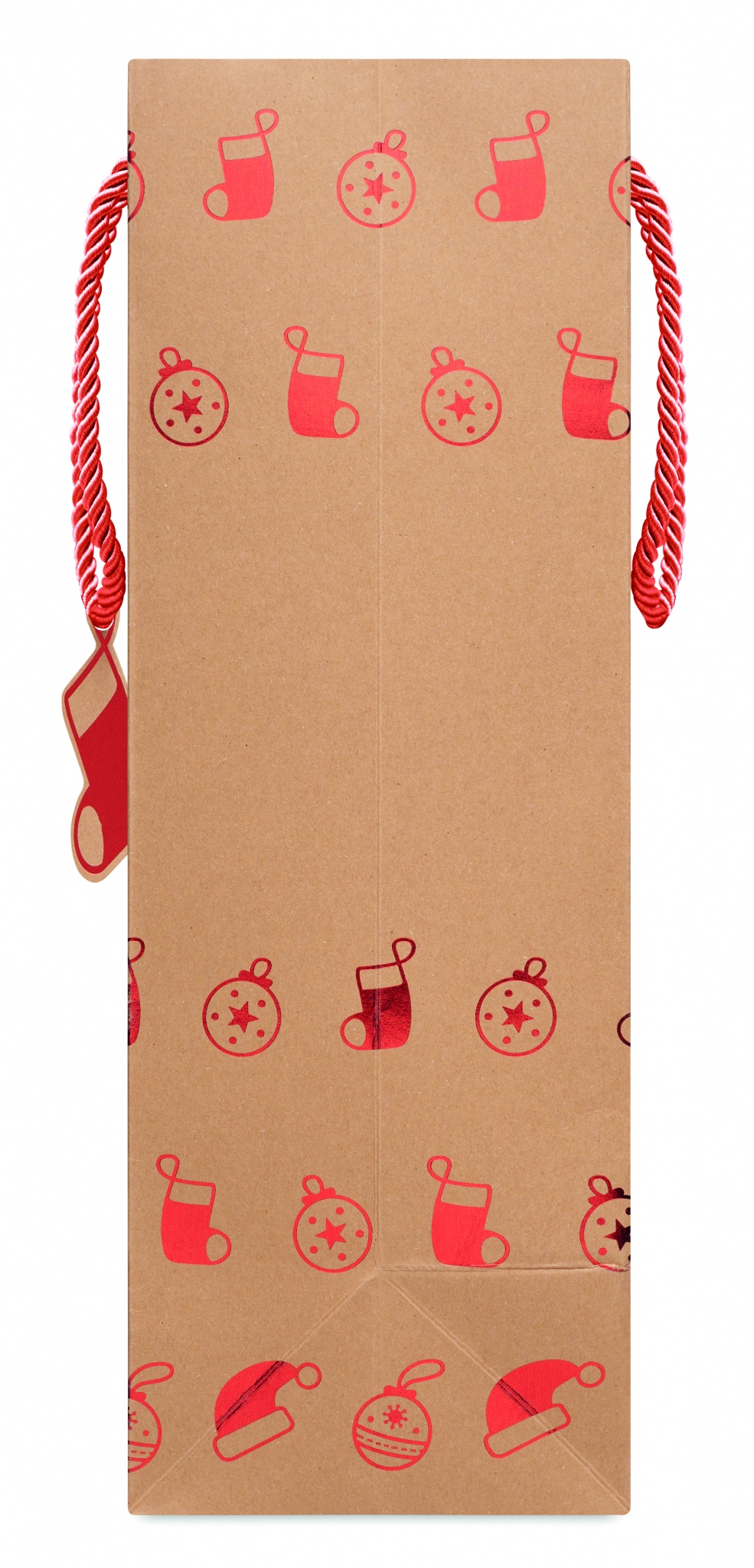 Elegantne hooajalise mustriga jõupaberist kingikott. Kaasas kingitussilt. 250 gr/m².