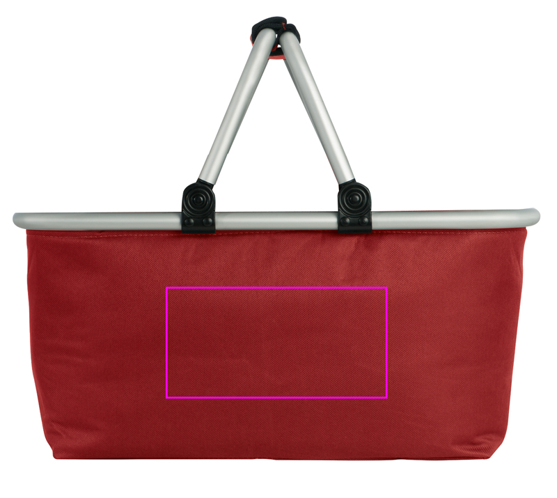 Erinevates värvitoonides alumiiniumraamiga ostukorv muudab teie ostlemise lihtsaks. Trükime teie logo ühele küljele,