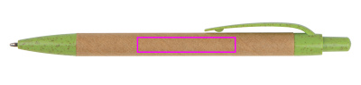 Taaskasutatud papist kuulpliiats, sinise kirjaga täidisega. Kõik rakendused on valmistatud jätkusuutlikust nisuõlest. Trükime teie logo võllile.