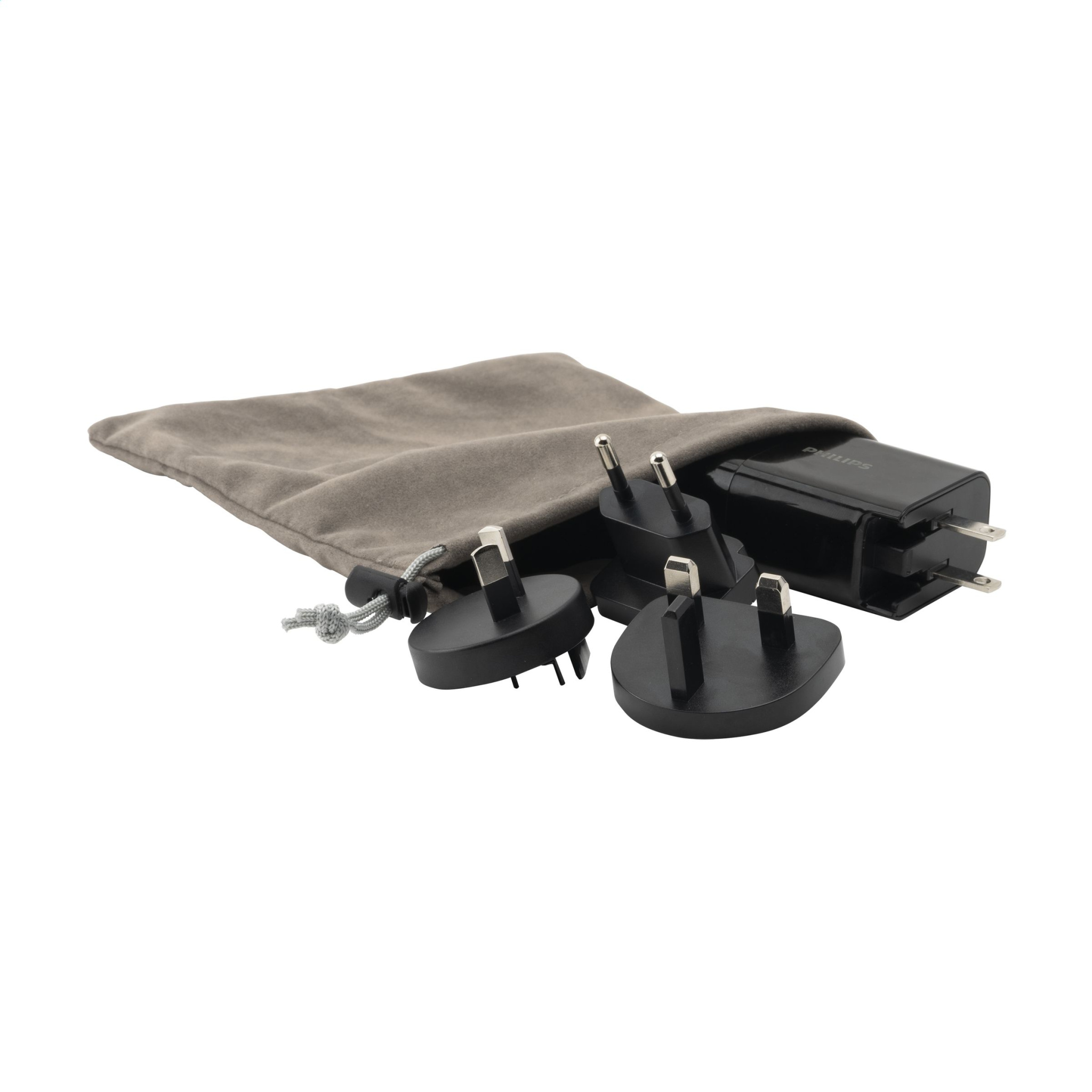 Ideaalne reisimiseks, nelja vahetatava pistiku ja käepärase reisikotiga. Laadige oma seadmeid välkkiirelt, kasutades võimsat PD-toega USB-C-porti. Kasutage USB-A porti teiste seadmete samaaegseks laadimiseks. Kaasas 4 pistikut: integreeritud USA pistik ja vahetatav AU, UK ja EU pistik. Sisend: 100-240V, 50-60Hz 0,7A. Väljund: USB A 5V/2.4A. Tüüp-C 5V/3A, 9V/2A, 12V/1,5A. Iga ese on eraldi karbis.