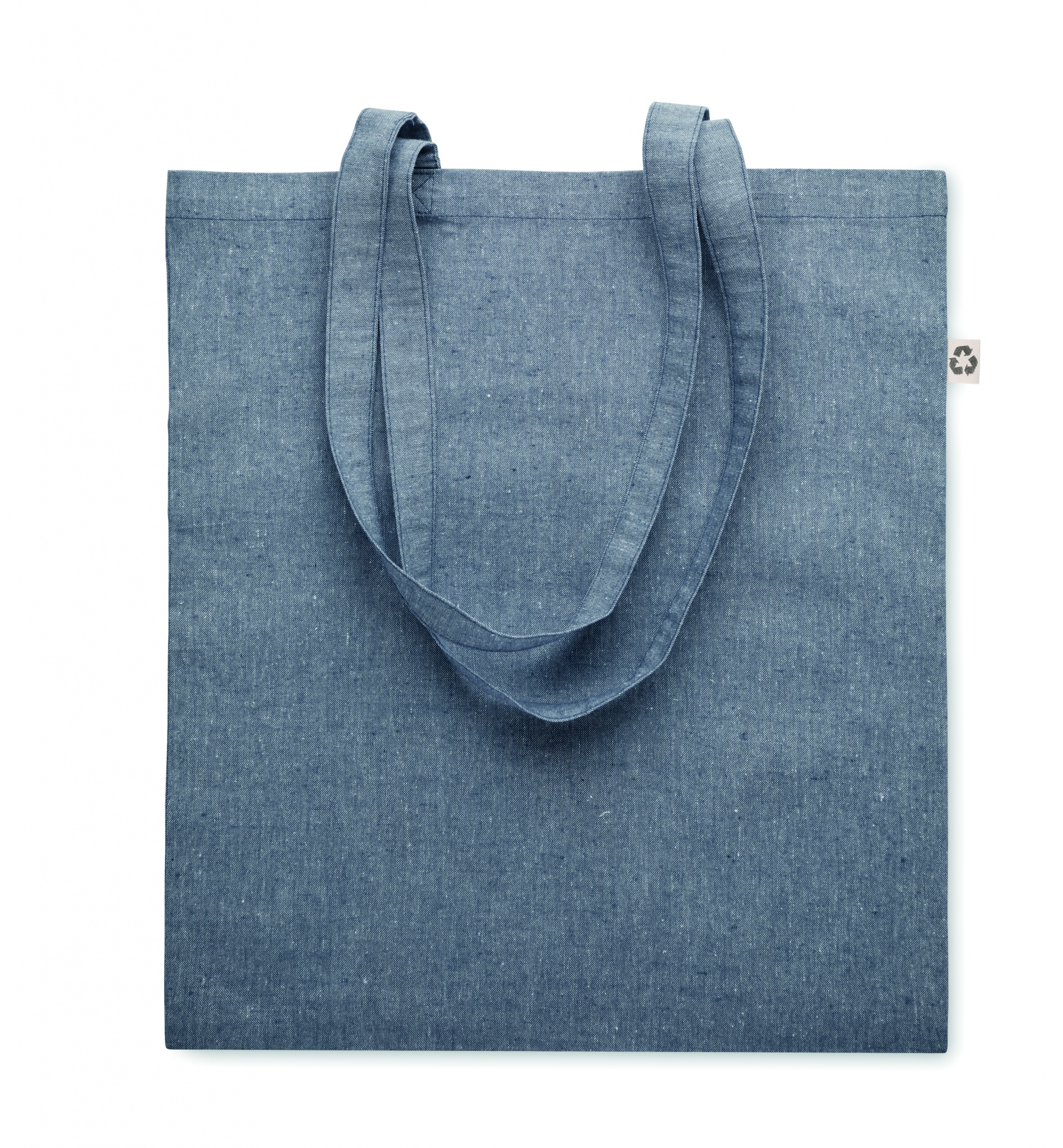 Taaskasutatud puuvillast ostukott (80% taaskasutatud puuvill, 20% puuvill) pikkade sangadega. 140 gr/m².