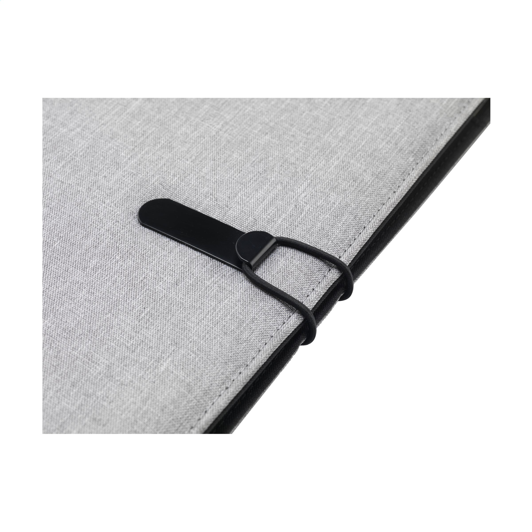 Vau! RPET materjalist moodne A4 konverents/dokument. Komplektis mitmed käepärased taskud ja eraldi sahtel mobiiltelefoni hoiustamiseks. Kaasas on ka pliiatsi aas. Kaust sisaldab kirjutusplokki, millel on 20 lehte FSC®-sertifikaadiga valge joonega paberit (70 g/m²). RCS-sertifikaadiga. Taaskasutatud materjal kokku: 6%.