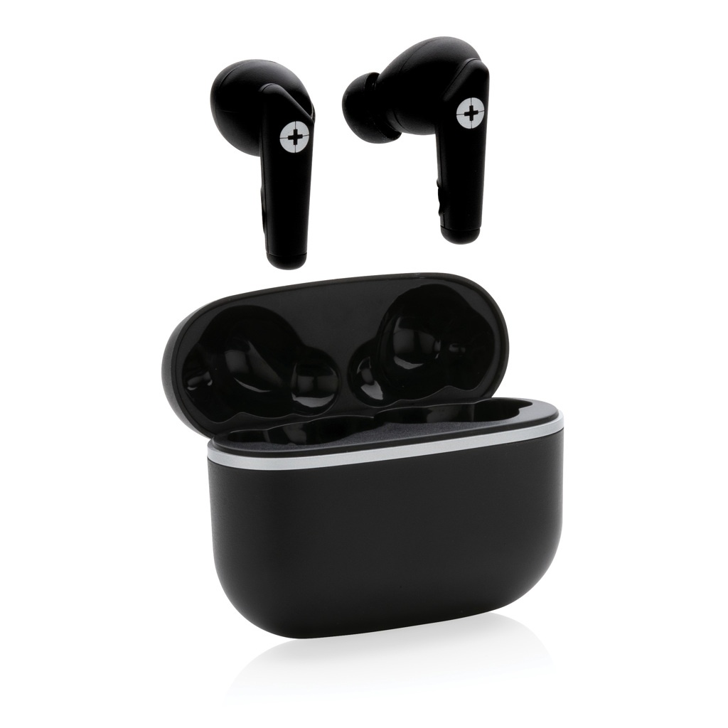 Uue põlvkonna tõelised juhtmevabad kõrvaklapid. Kõrvaklapid ja laadimisümbris on valmistatud RCS-i (Recycled Claim Standard) sertifitseeritud taaskasutatud ABS-ist. Taaskasutatud kogusisaldus: 59% eseme kogukaalust. RCS-sertifikaat tagab taaskasutatud materjalide täielikult sertifitseeritud tarneahela. Kõrvaklapid on kompaktses 400 mAh laadimisümbrises, mis võimaldab teil laadida ja kaasa võtta kõrvaklappe kõikjale, kuhu lähete. Kõrvaklapid kasutavad BT 5.3 automaatseks sidumiseks ilma probleemideta ja stabiilse ühendusega. Kõrvaklappidel on 40 mAh aku, mis võimaldab mängida kuni 4 tundi ja mida saab laadimisümbrises uuesti laadida 1,5 tunniga. Juhtmeta ühenduse kaugus on kuni 10 meetrit. Kaasa arvatud C-tüüpi laadimiskaabel, mis on valmistatud GRS-sertifikaadiga taaskasutatud TPE-st. Pakitud FSC® mix kinkekarpi. Toode ja tarvikud 100% PVC-vaba