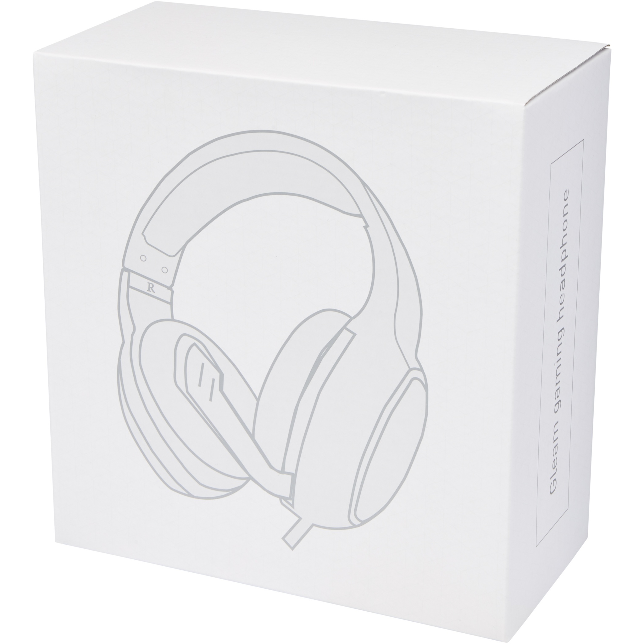 Gleam mängukõrvaklapid pakuvad kvaliteetset stereoheli koos esmaklassilise sisseehitatud mikrofoniga. See sisaldab 2-meetrist juhtmega kaablit 3,5 mm Aux otsa ja USB-A-pistikuga. 3,5 mm Aux sisend pakub arvuti või mobiilseadmega ühendamisel heli ja mikrofoni. C-tüüpi sisenditega seadmete jaoks on kaasas Aux-C-tüüpi adapter. Kaasasolevate adapterite ja sisseehitatud kaabli abil ühilduvad mänguri kõrvaklapid kõigi suuremate arvutite, sülearvutite, mobiiltelefonide, tahvelarvutite, PlayStationi ja Nintendo Switchiga. Lihtne seadistada ilma draiverinõueteta. Kõrvaklappide sisseehitatud helitugevuse regulaator muudab helitugevuse reguleerimise lihtsaks ning kõrvaklappide täiendav polsterdus ja reguleeritav peapael muudavad nende kandmise mugavaks. Selle elemendi saab valgustusfunktsiooni paljastamiseks kõrvaklappidele lasergraveerida. Tarnitakse kinkekarbis, mis on valmistatud jätkusuutlikust materjalist.