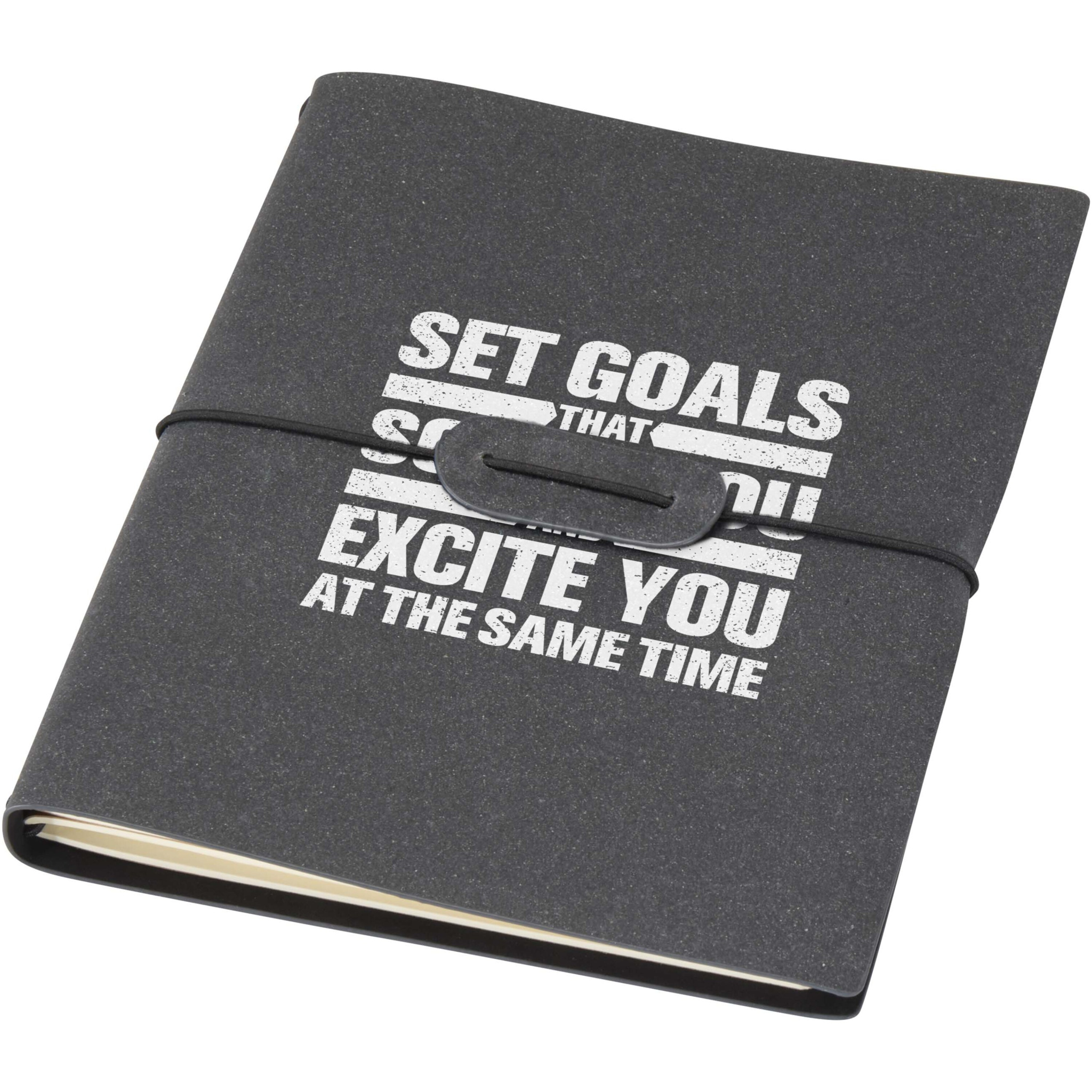 Slyk A5 formaadis märkmik on valmistatud taaskasutatud plastist, millel on elastne sulgur, mis hoiab kindlalt kahte sisemist märkmikku – punktiirjoonega ja teise joonelise. Märkmikud sisaldavad 32 kreemikat lehte, mis on valmistatud 70 g/m² paberist, millel on ümarad nurgad ja nähtavad seljaõmblused. Märkmike kaaned on valmistatud papist.