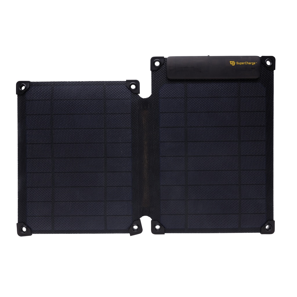 10 W kahekordne kokkupandav päikesepaneel, mis võimaldab otse laadida mobiilseadmesse, kõlarisse, akupangasse või muusse seadmesse. Lihtsalt ühendage kaabel seadmega, kui paneel on päikesevalguse käes, ja alustage laadimist. Tasu määr sõltub tingimustest. Paneel kasutab kvaliteetseid monokristallilisi päikesepaneele, mille konversioonimäär on 21%. USB A ja C-tüüpi väljundiga (max 5V/1A) ja laadimisnäidikuga laadimiskiiruse näitamiseks. Laadimiskiirus päikeseenergia: 5V/2000mA. Valmistatud PET-materjalist ja RCS-sertifikaadiga taaskasutatud ABS-ist. Sisaldab integreeritud statiivi funktsiooni päikesepaneelide optimaalse nurga all kasutamiseks. IPX 6 veekindel. Pakitud FSC® segupakendisse.