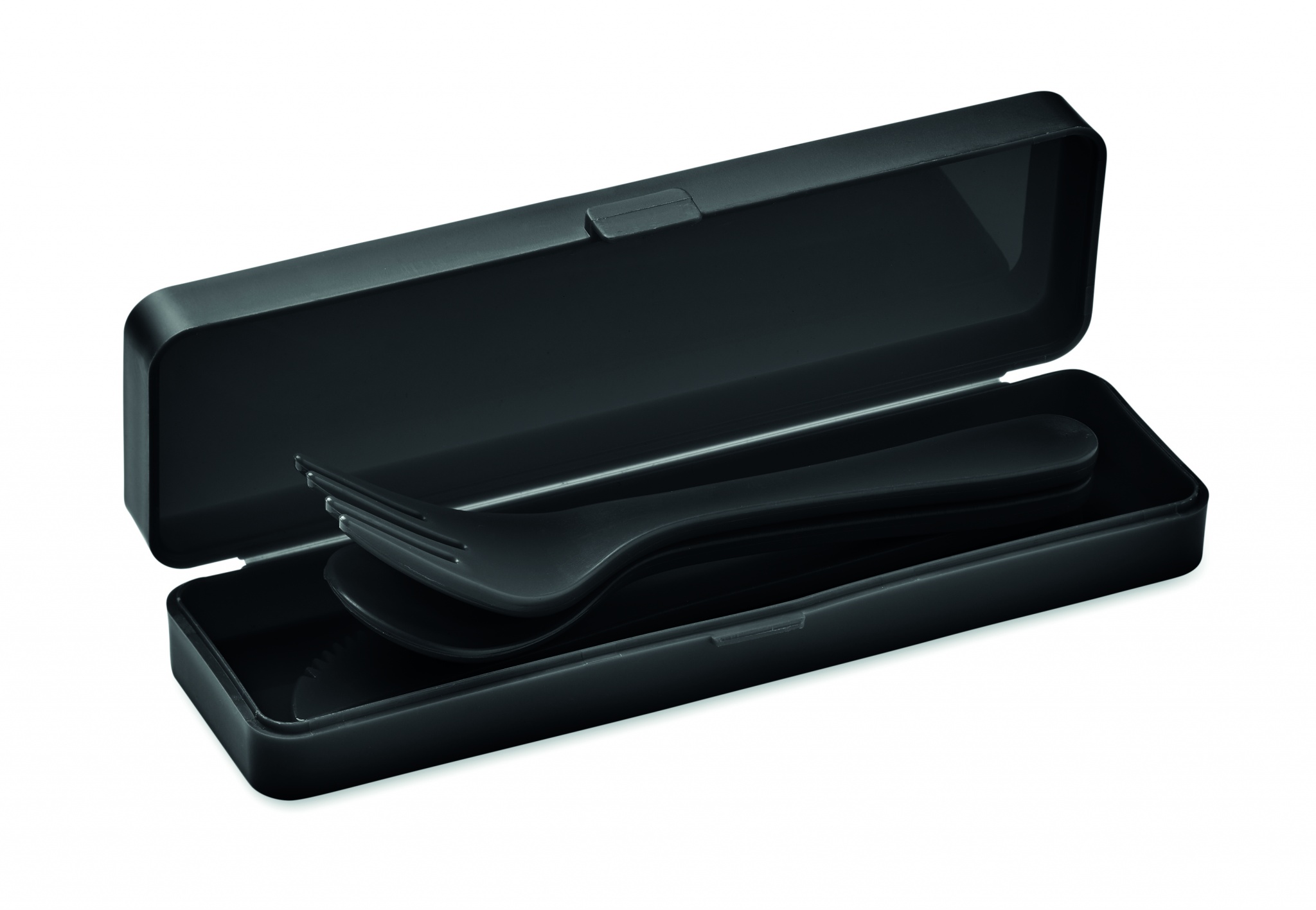 Korduvkasutatav PP kaasaskantav söögiriistade komplekt ja karp. Kaasas lusikas, kahvel ja nuga.