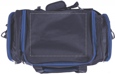 600D polüestrist spordikott, millel on 2 lukuga küljeosa ja 1 lukuga kõrvaklapiaasaga esitasku. Kaasas eemaldatav ja reguleeritav õlarihm.