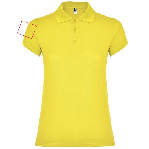 Lühikeste varrukatega polosärk naistele. Sisekrae tugevdatud kaetud õmblused. 1x1 soonik krae ja kätised. Küljeõmblused ja liibuv lõige. Kitsas 3-nupuline plekk. Külgmised pilud. Eemaldatav etikett. Modell on 179 cm pikk ja kannab suurust S.
