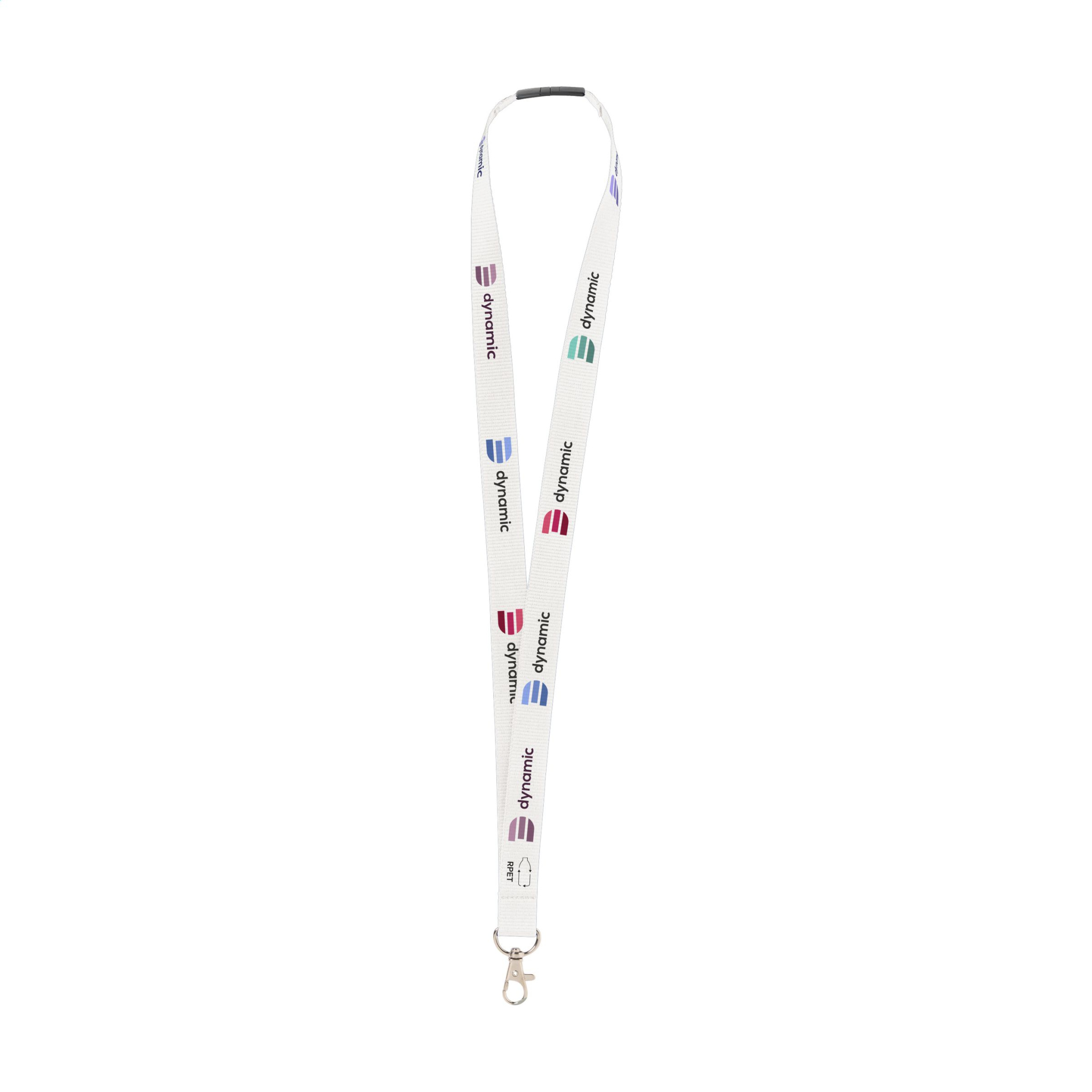 Tugev kootud RPET polüesterpael (valmistatud taaskasutatud PET-pudelitest). Komplektis metallist karabiini ja plastikust turvalukuga. Kaasa arvatud täisvärviline sublimatsioontrükk. Valmistatud Euroopas.