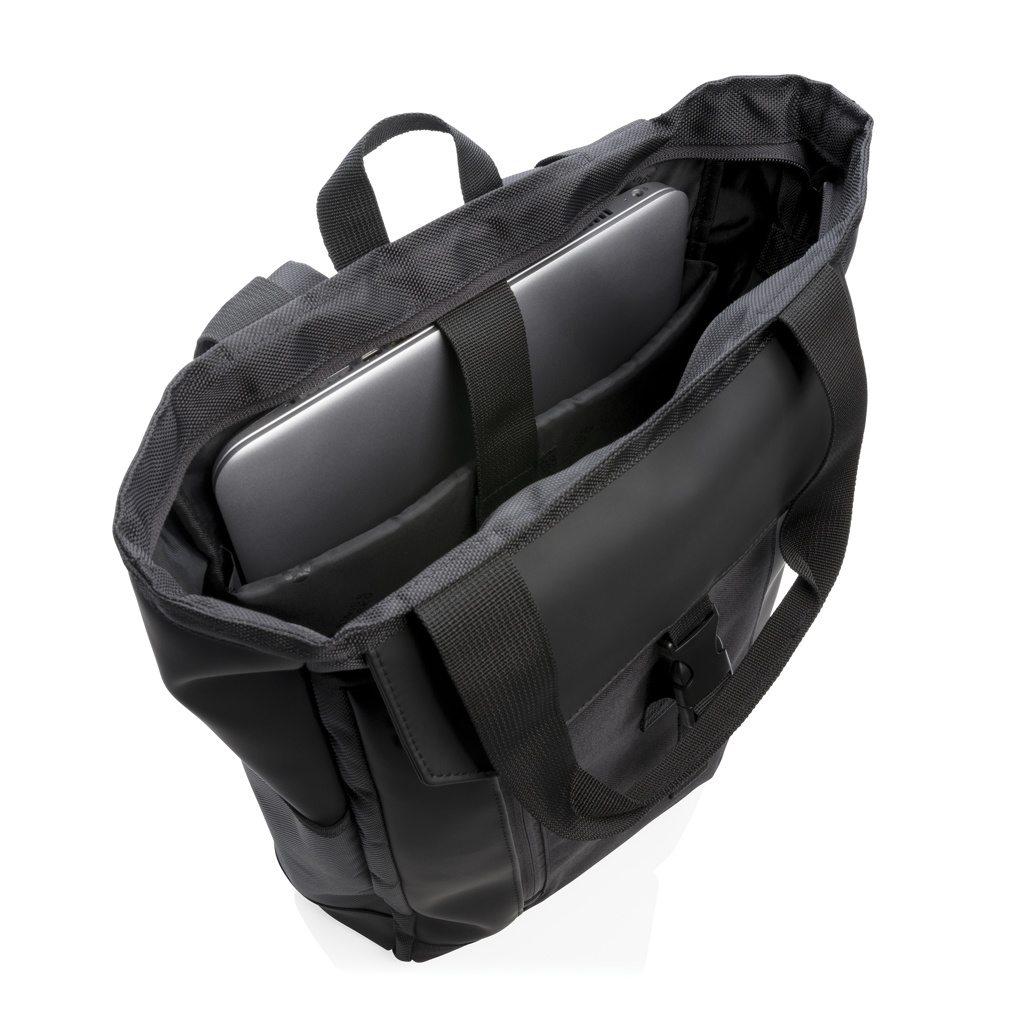 Seda mitmekülgset kotti saab kanda õlal, käes või seljakotina. Sisaldab polsterdatud 15" sülearvuti sahtlit ja RFID-kaitsega ümbriseid. PVC-vaba.