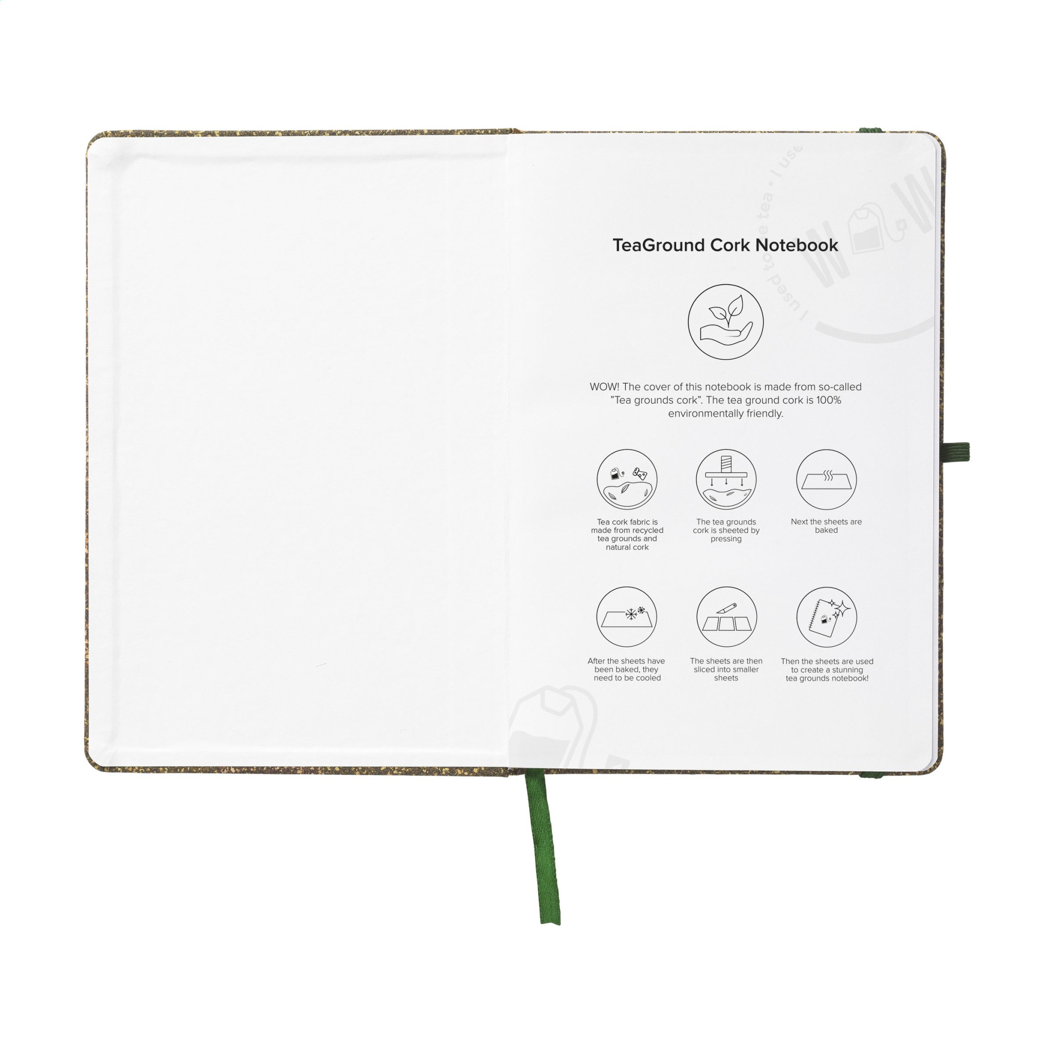 Logo trade reklaamtoote pilt: Teejahvatatud korgist paberist märkmik A5