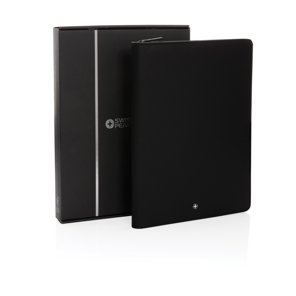 Swiss Peak Heritage kollektsioon räägib kaasaegse elegantsi keeles. Esitatakse ikoonilises Itaalia taaskasutatud PU-kattes ja tõmblukuga. Sees on tahvelarvuti/telefoni alus, vidinahoidikud, visiitkaartide pesad, varrukad märkmete ja paberite jaoks ning pliiatsi aas. Voodriga 20 lehte A4 kivipaberist märkmikuga. portfell on valmistatud RCS (Recycled Claim Standard) sertifitseeritud taaskasutatud materjalidest. RCS-sertifikaat tagab taaskasutatud materjalide täielikult sertifitseeritud tarneahela. Valmistatud 100% taaskasutatud RCS-sertifikaadiga taaskasutatud PU-st. Taaskasutatud kogusisaldus: 9% eseme kogukaalust. PVC vaba.