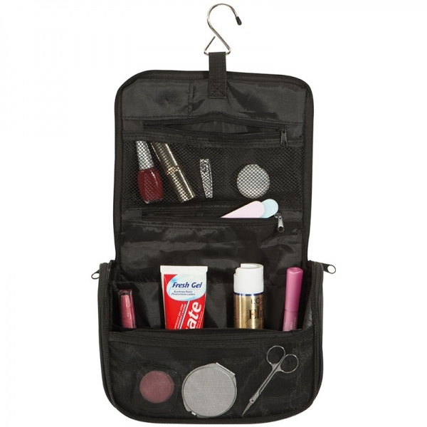 190T nailonist tualettkott, millel on suur sisemine sahtel, 3 lukuga sahtlit, 4 kummipaela ja riputuskonks. Trükime teie logo esiküljele.