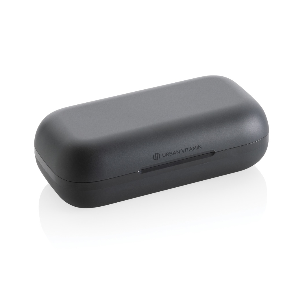 Nende täiuslikult sobivate treenimiskõrvaklappidega ületage ennast ja viige oma kehavorm järgmisele tasemele. Kohandatavad, ideaalselt sobivad kõrvakonksud on reguleeritavad mitme kõrvaotsa valikuga, et tagada suurem mugavus, ja need on loodud püsima paigal, olenemata sellest, kui intensiivne teie treening on. Need kerged kõrvaklapid on loodud tipptasemel jõudluse jaoks ning nende vastupidav disain tagab IPX5-reitinguga higi-, tolmu- ja veekindluse. Kuni 8-tunnise kuulamisajaga tänu täiustatud BT 5.3-le igas kõrvaklapis ja võimsale tasakaalustatud helile on teil alati muusika motiveeriv. Kõrvaklapid ja 600 mAh laadimisümbris on valmistatud RCS-i (Recycled Claim Standard) sertifitseeritud ringlussevõetud ABS/TPE-st. Taaskasutatud kogusisaldus: 55% toote kogukaalust. RCS-sertifikaat tagab taaskasutatud materjalide täielikult sertifitseeritud tarneahela. Kõrvaklappe saab laadimisümbrises 3 korda täis laadida. Urban Vitamin tooted on valmistatud ilma PVC-ta ja pakendatud vähendatud plastpakendisse.