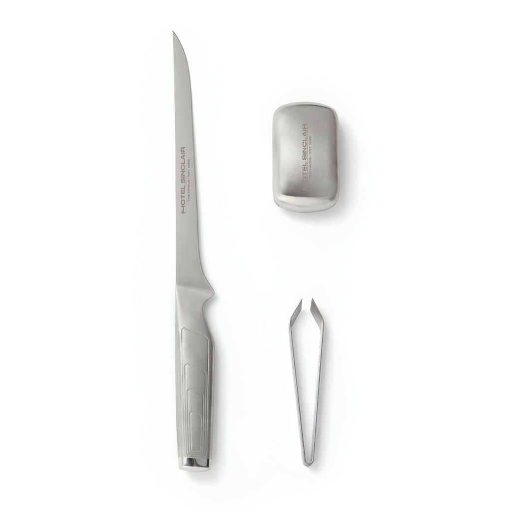 Kvaliteetsest Jaapani 420J terasest fileerimisnuga. Filee noal on pikk, õhuke ja painduv tera – ideaalne täpseteks lõigeteks. Nuga saab kasutada näiteks kala fileerimiseks või singi nikerdamiseks. Komplektis on metallist seep, mis eemaldab lõhnad nagu kala ja küüslauk. Karbis on ka pintsett kalade väikeste luude eemaldamiseks. Ideaalne kingitus kokandushuvilistele.